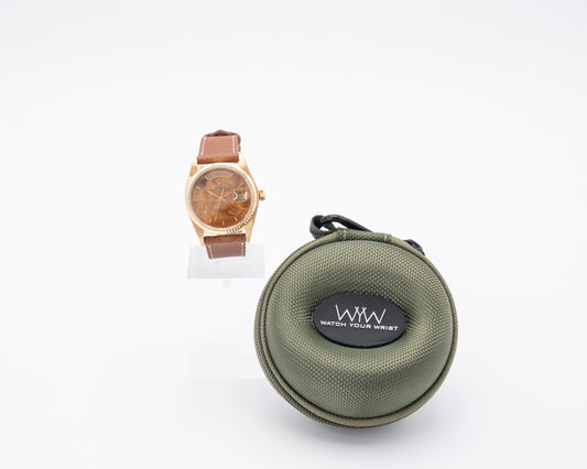 Rolex DayDate 36mm 18038 Yellow Gold Birch Wood Dial Spanish Day Wheel