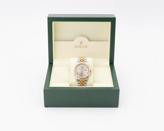 Rolex Datejust 36mm 16233 Silver Roman Dial Two Tone Yellow Gold