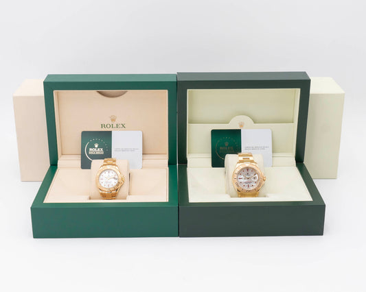 HIS AND HERS PAIR Rolex Yacht Master 40mm 16628 Yellow Gold Mother of Pearl Ruby Dial