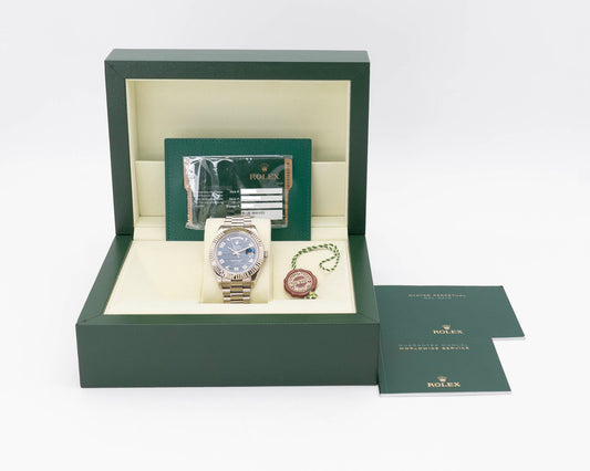 Rolex Day Date 41mm 218239 Arabic Blue Waves Dial White Gold 2011