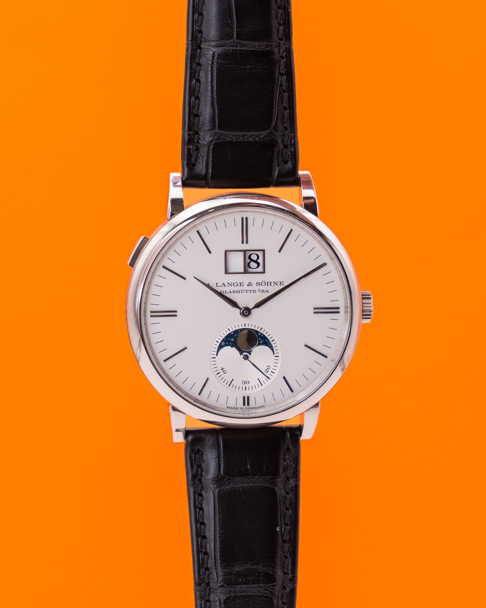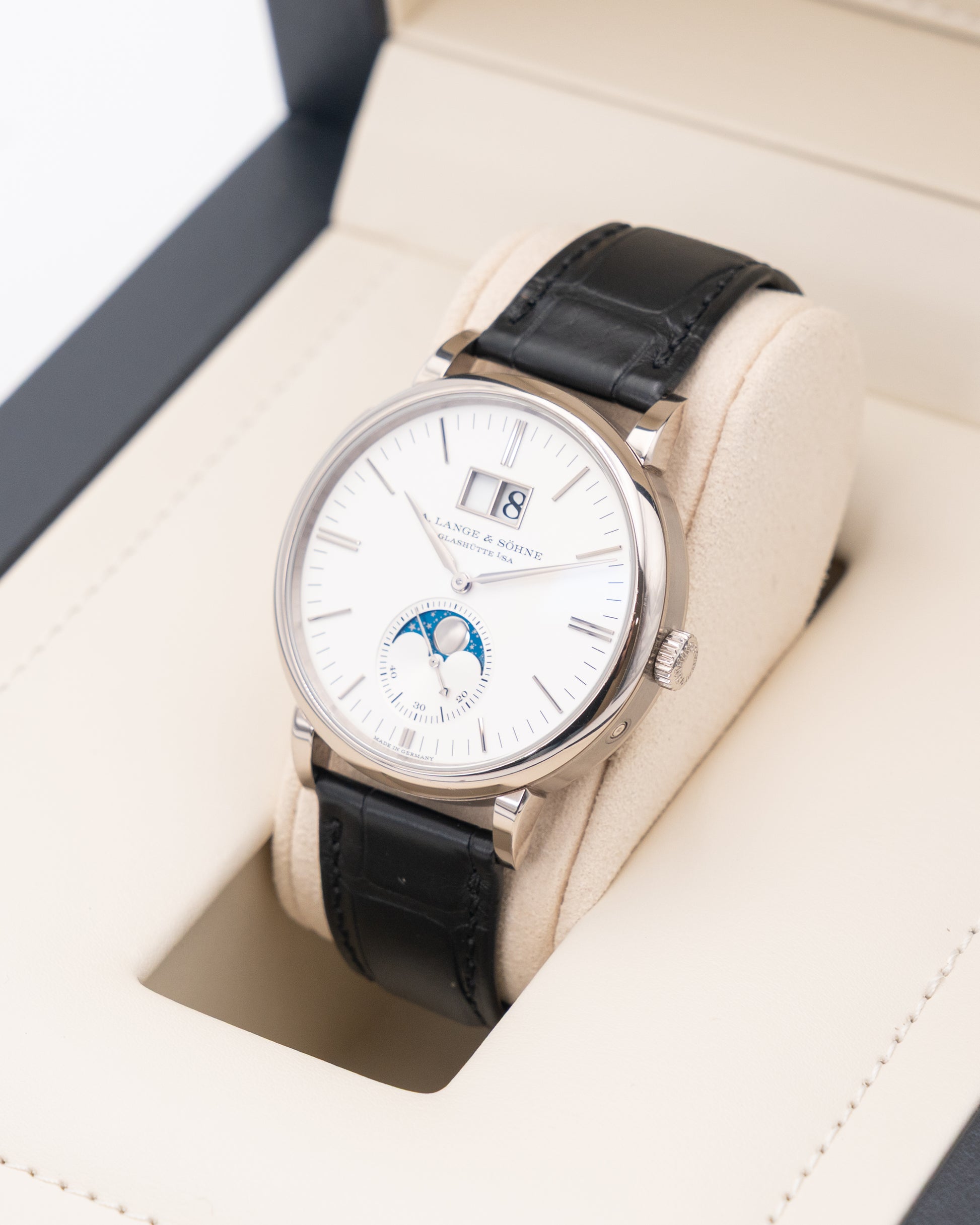 A. Lange & Söhne Saxonia Moon Phase 40mm 384.026 White Gold Silver