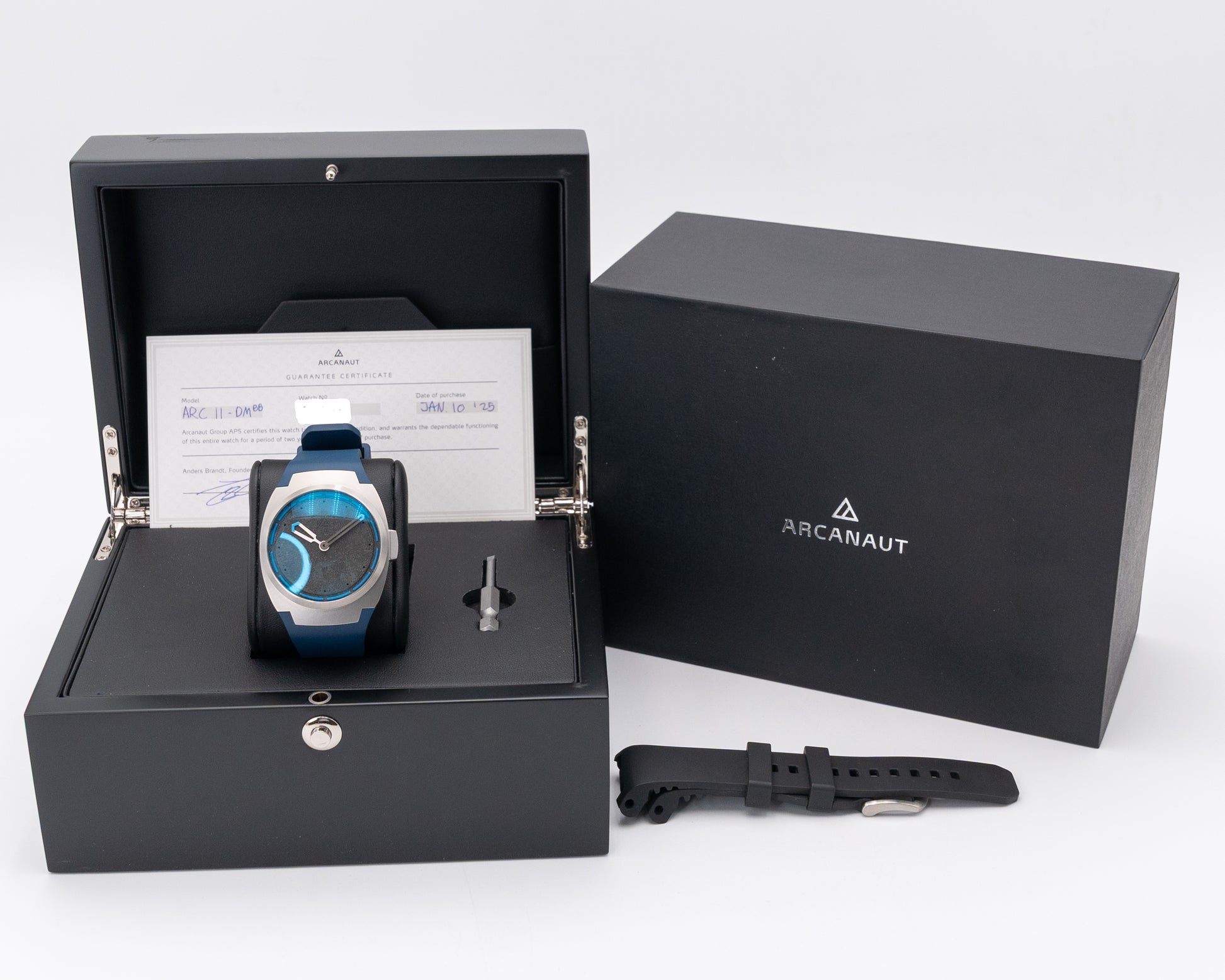 Beneath its distinctive exterior, the watch houses a Swiss automatic movement, delivering exceptional accuracy and dependable performance. Every component of the Arc II D’ARC Matter Badger Blue reflects Arcanaut’s dedication to sustainable innovation and Nordic craftsmanship. Assembled in Copenhagen, it stands as a symbol of modern watchmaking that values individuality and integrity. With its combination of bold design, rare materials, and mechanical excellence, this timepiece represents the essence of Arcanaut’s creative spirit—functional, forward-thinking, and authentically original.