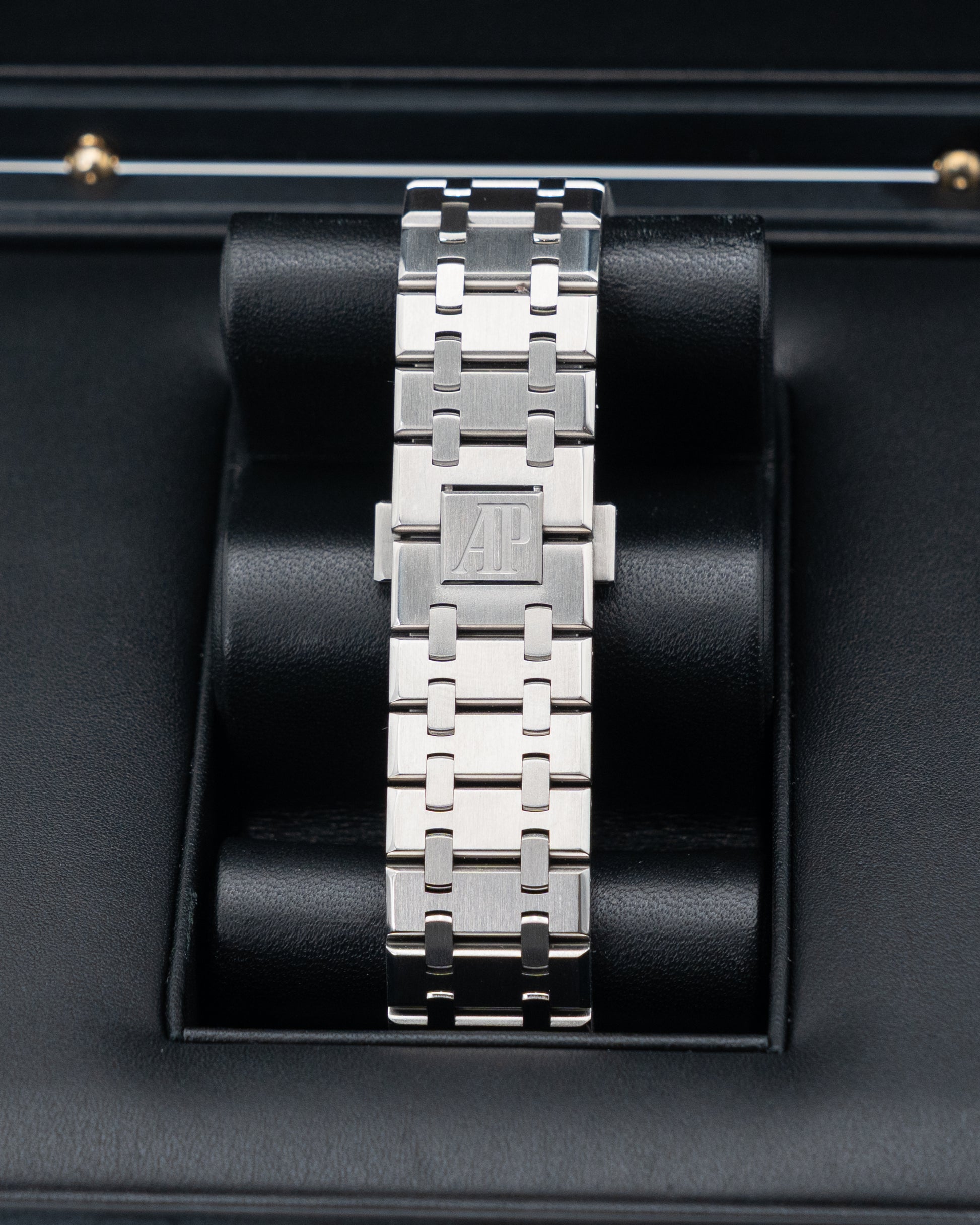 At its heart, the watch houses the Audemars Piguet Caliber 3120, a self-winding movement known for its reliability and finishing. The sapphire crystal caseback reveals meticulous details such as the engraved 22k gold rotor and hand-decorated bridges. With a power reserve of approximately 60 hours and water resistance up to 50 meters, the Royal Oak 15400 combines practical performance with haute horlogerie craftsmanship. This model is a perfect choice for collectors and enthusiasts who value heritage, precision, and unmistakable design.