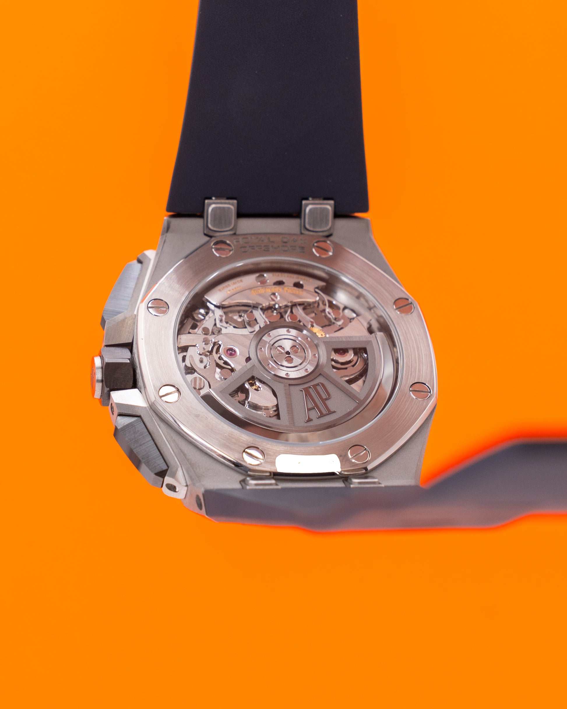 At its heart lies the Audemars Piguet Caliber 4401, an in-house automatic flyback chronograph movement that offers a seamless timing experience and an impressive power reserve. A sapphire crystal caseback reveals the beautifully decorated mechanism, underscoring the brand’s dedication to haute horlogerie craftsmanship. With 100 meters of water resistance, this model blends luxury engineering with everyday practicality—a dynamic evolution of the Royal Oak Offshore lineage.