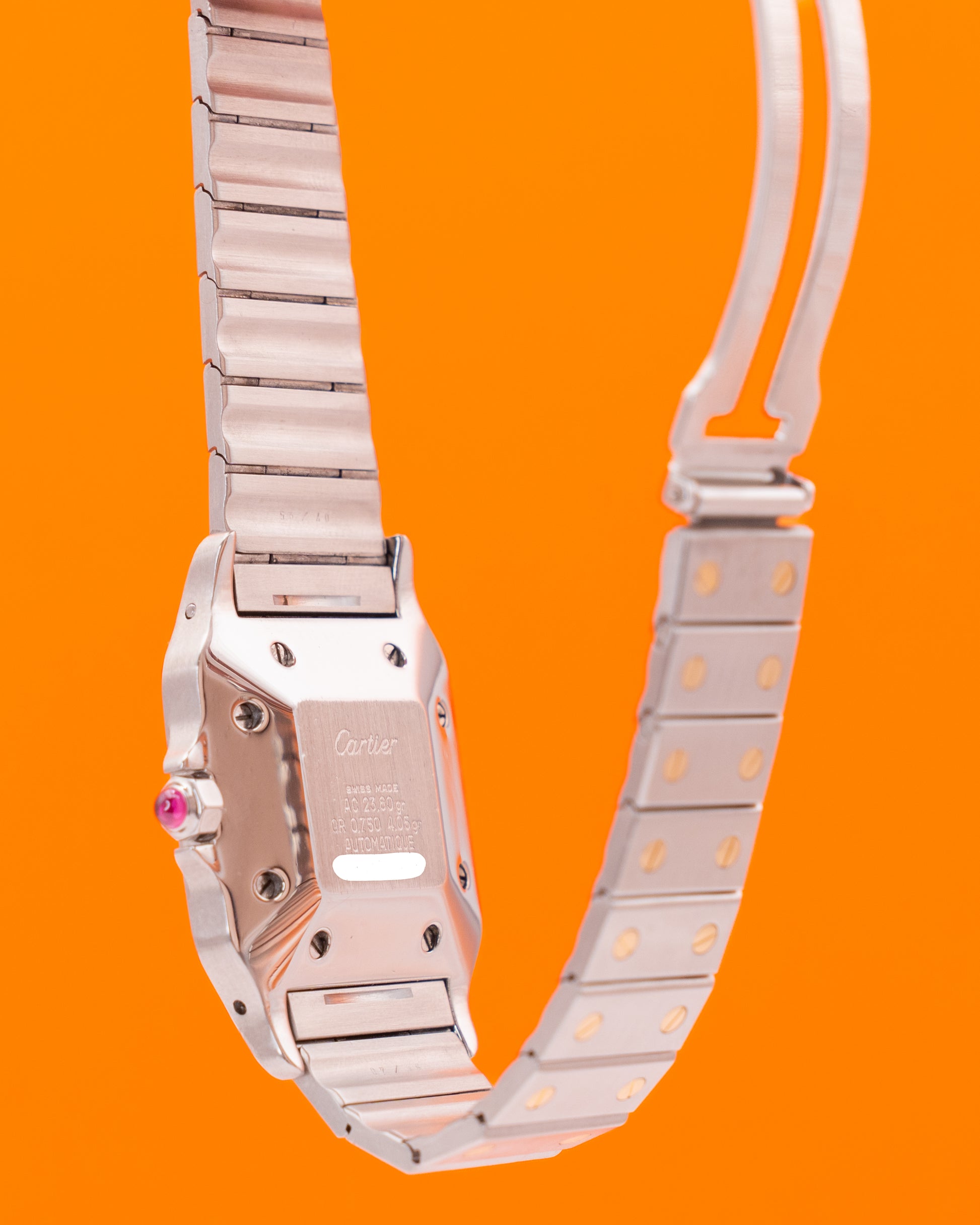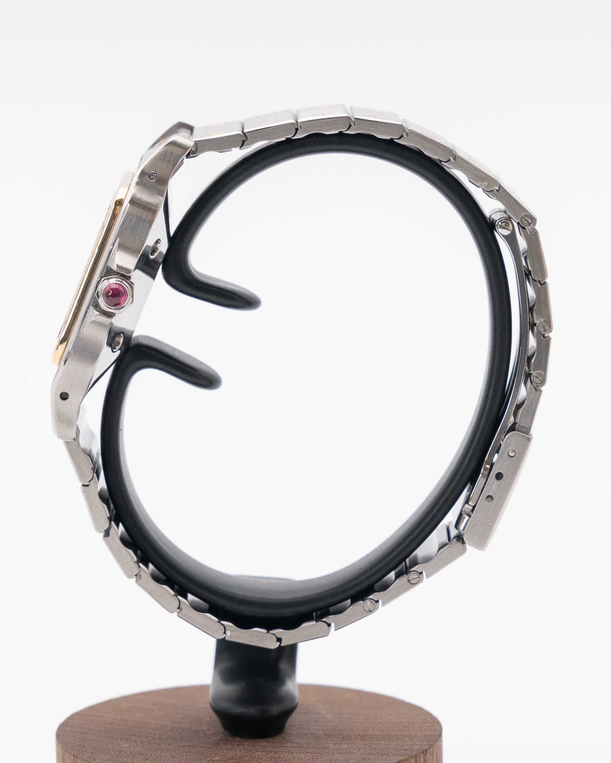 The Cartier Santos Carrée Ref. 2961 is a distinguished timepiece that showcases Cartier’s signature blend of elegance and innovation. Featuring a robust stainless steel case and bracelet, this watch is designed for durability and comfort, making it suitable for both formal and everyday wear. While the exact case size isn’t specified, the Santos Carrée is known for its distinctive square shape, offering a bold, geometric aesthetic that sets it apart from traditional round watches.