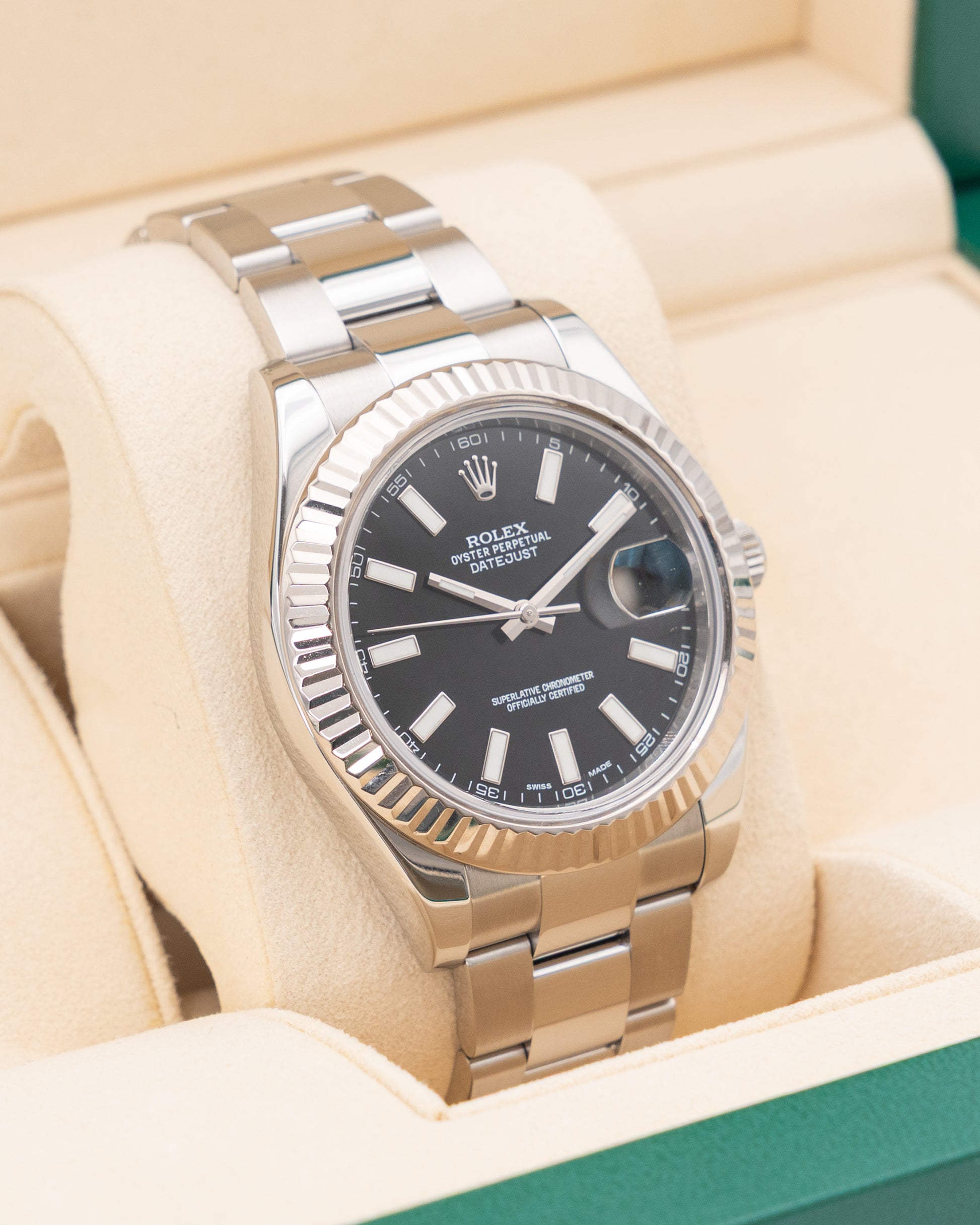 CPO Rolex Datejust 41mm 116334 Black Stick Dial Fluted Oyster 2015
