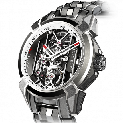 Jacob & Co. Epic X Titanium Bracelet White Neoralithe Inner Ring 44 mm watch. Model reference: EX100.20.PS.PP.A20AA. Titanium case. Skeleton dial. Manual-winding movement. Titanium bracelet. Swiss made. The watch comes in the original packaging, with a set of documents and 2 years warranty. At Modern Wrist we offer new authentic watches at the best prices.