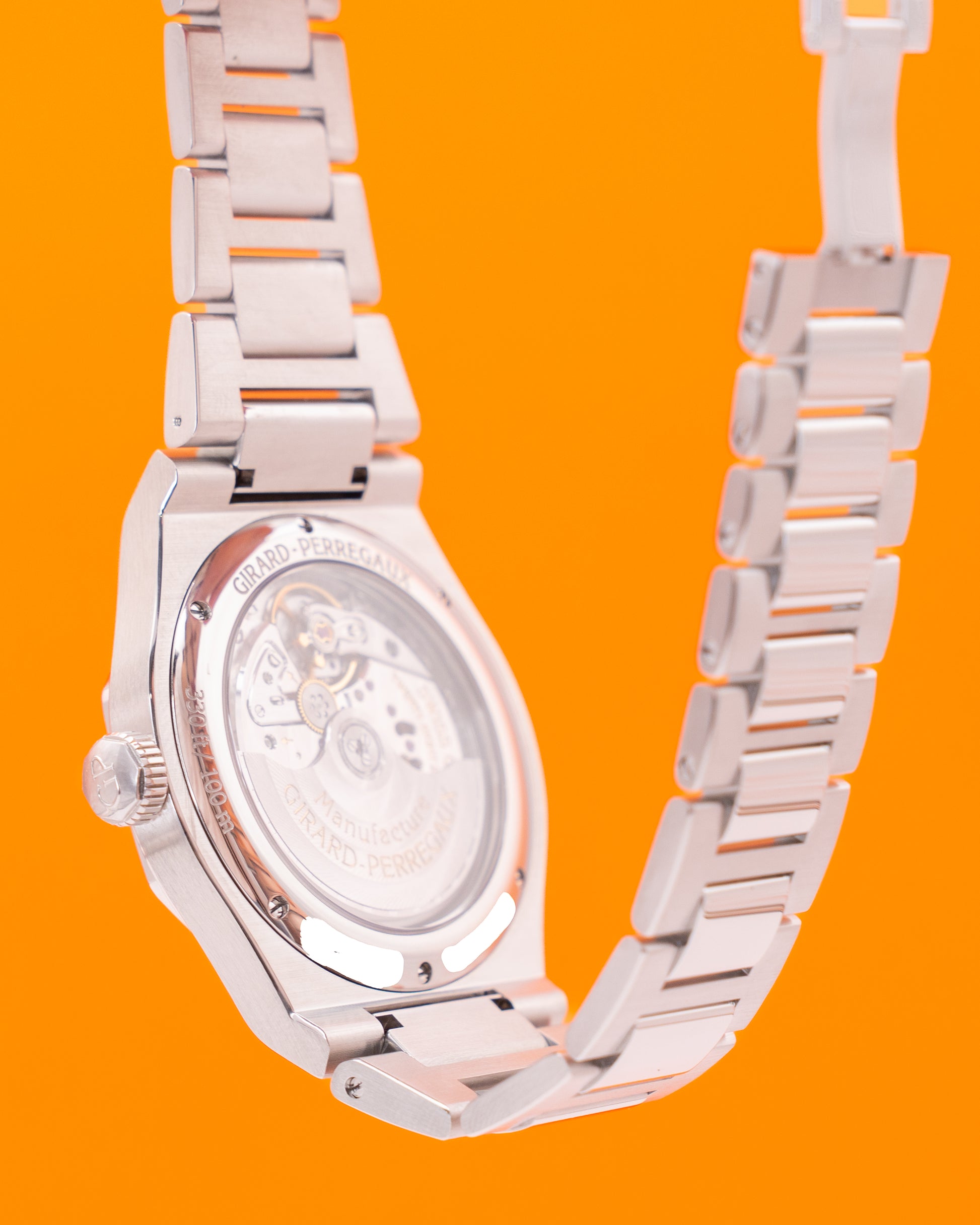 Inside, the Laureato is powered by an automatic movement that delivers precision and reliability, embodying the craftsmanship for which Girard-Perregaux is celebrated. Water-resistant to 100 meters, this model combines sporty durability with elegant versatility, making it equally suited for professional or casual settings. The Laureato Automatic 42mm in green is a modern statement piece that reflects the perfect harmony between bold design and timeless sophistication.