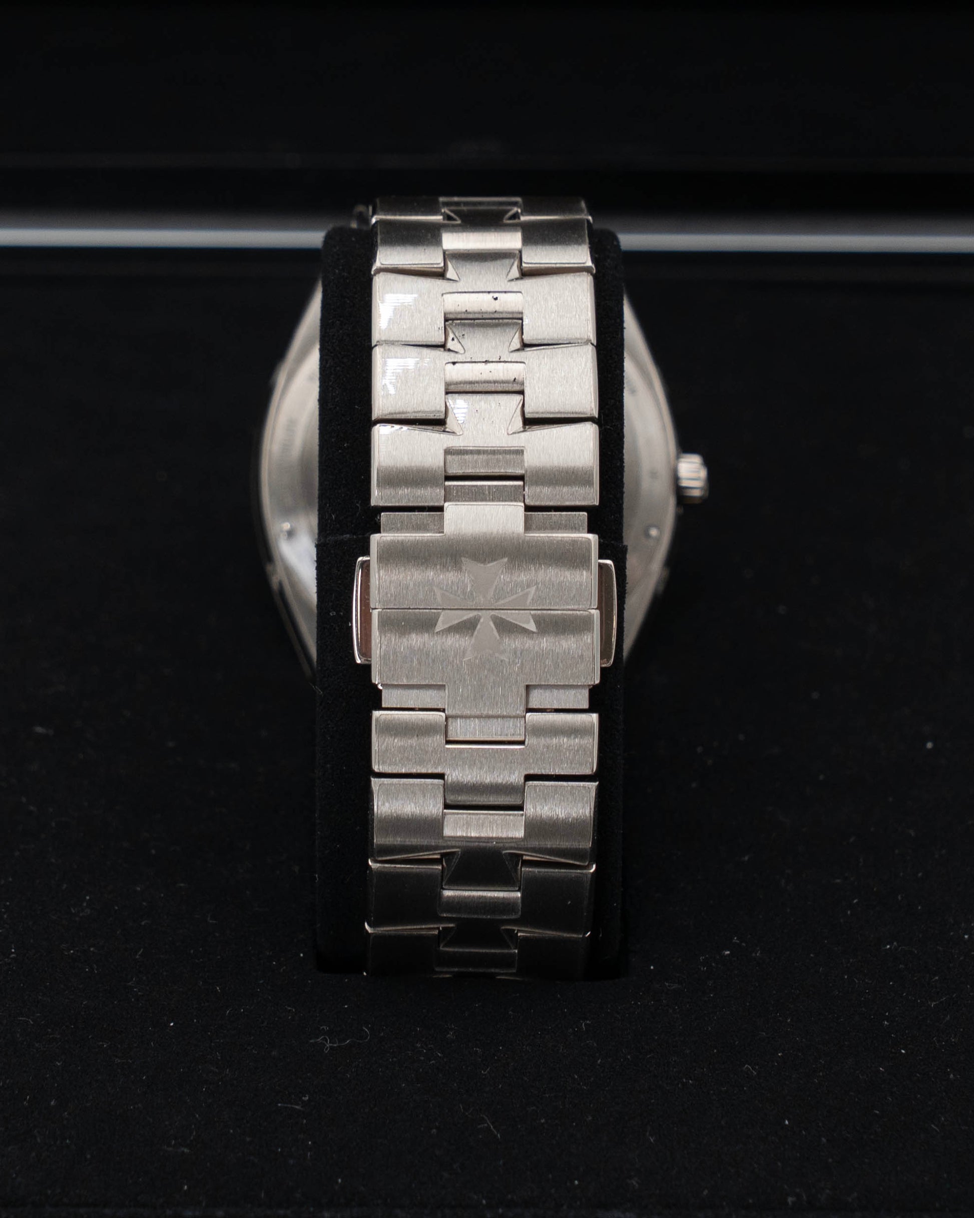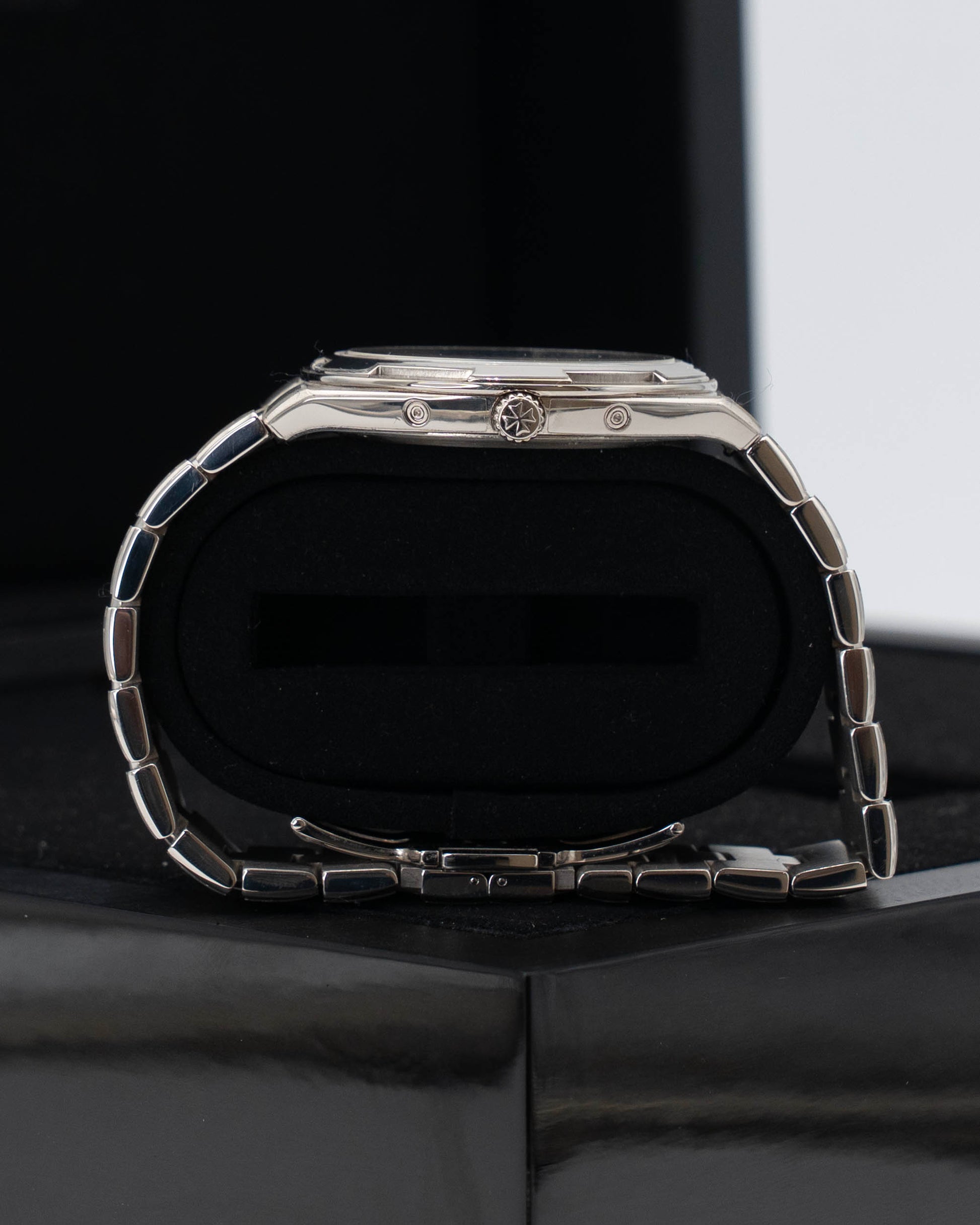 The Vacheron Constantin Ultra-Thin Perpetual Calendar reference 4300V/120G-B946, released in 2021, represents the pinnacle of Swiss watchmaking excellence and horological mastery. Its 41.5 mm white gold case houses a stunning skeleton dial that reveals the intricate mechanics of the perpetual calendar movement, showcasing the brand's exceptional finishing and attention to detail. The watch is completed with a matching white gold bracelet adorned with diamonds, creating an extraordinary blend of technical sophistication and refined luxury. With 50 meters of water resistance, the watch prioritizes elegance and precision over ruggedness, making it ideal for formal wear and special occasions.