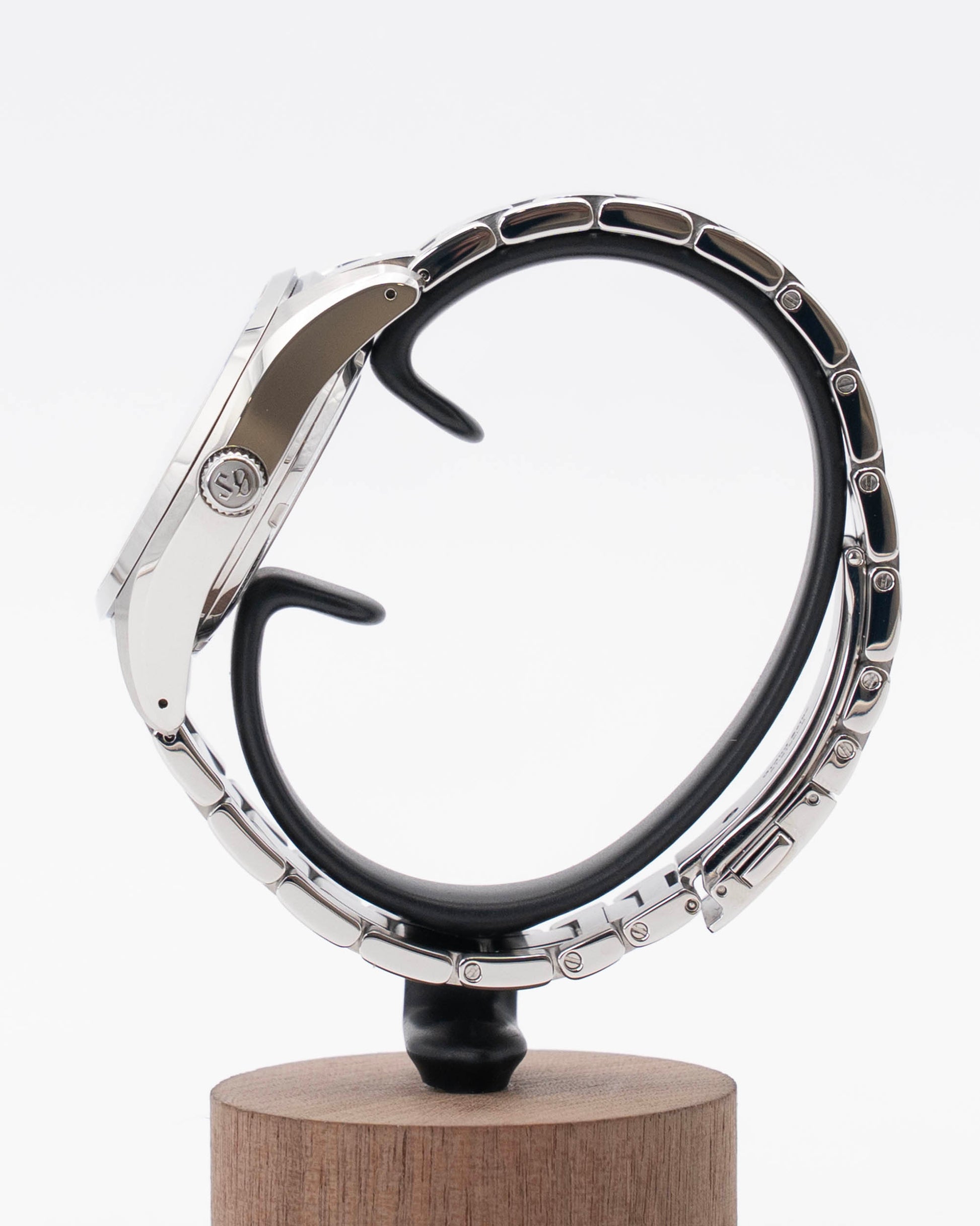 The Grand Seiko SBGA401 from the Heritage Collection, released in 2024 as a boutique online exclusive, is a striking blend of traditional Japanese aesthetics and modern mechanical precision. Its 41 mm stainless steel case frames a deep black dial with a subtle textured finish that catches light beautifully, while the rose gold hands add a touch of understated luxury and contrast. The watch is fitted with a matching stainless steel bracelet, offering both elegance and comfort for daily wear. With 100 meters of water resistance, it’s built to handle everyday use while maintaining a refined, dressy appearance.