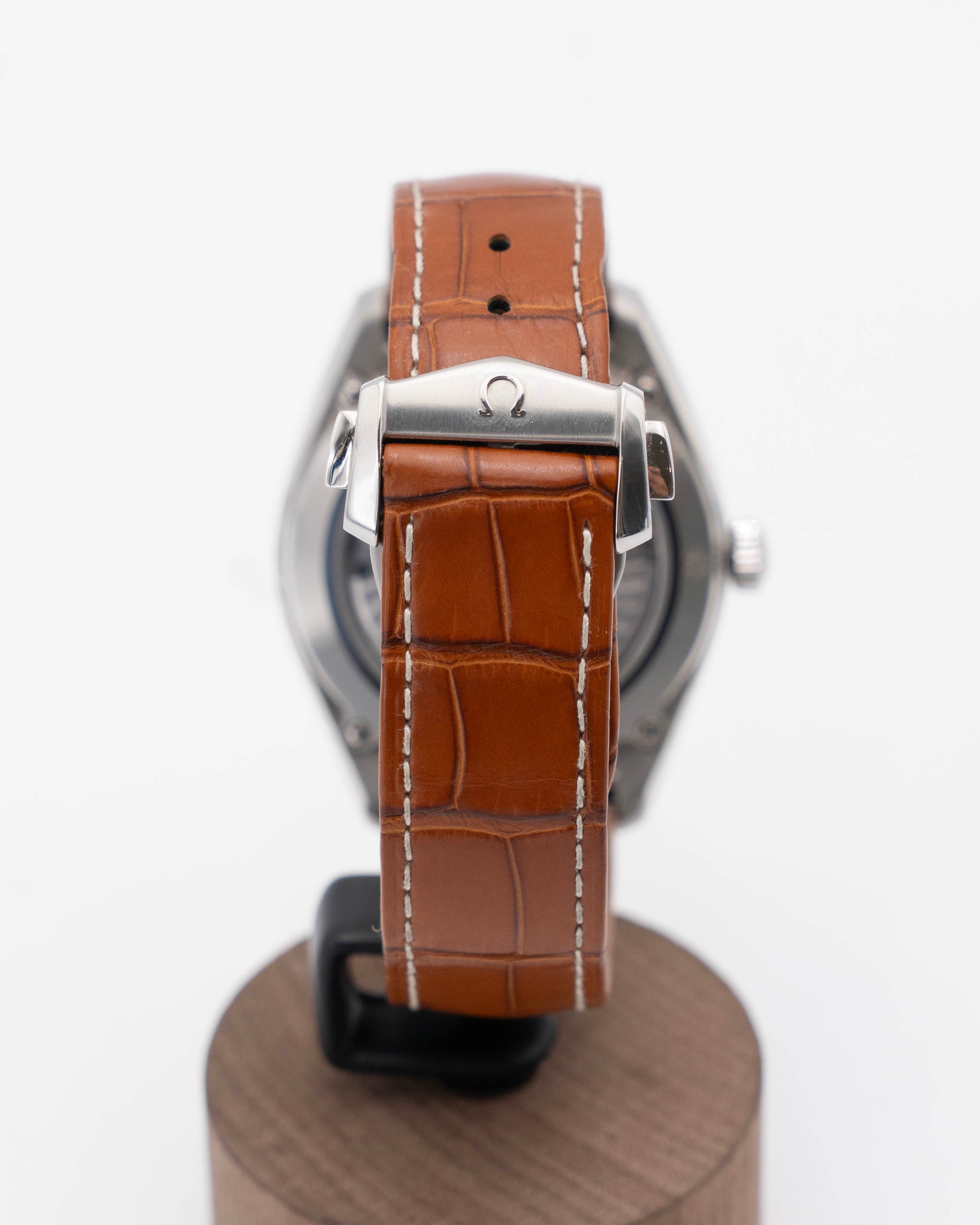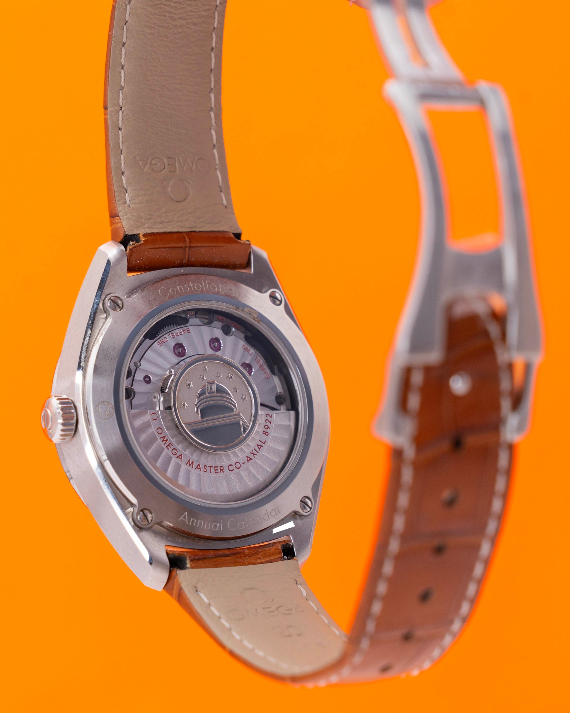 The Omega Globemaster Annual Calendar reference 130.33.41.22.02.001 is a sophisticated and technically impressive timepiece that combines elegant design with practical functionality. Its 41 mm stainless steel case delivers a refined, commanding presence on the wrist, while the white dial offers a clean, professional aesthetic enhanced by applied hour markers and hands for excellent legibility. The annual calendar complication — requiring adjustment only once per year in February — adds practical sophistication, displayed elegantly at the 12 o'clock position. The leather strap provides classic comfort and refinement, making it ideal for formal occasions or professional settings.