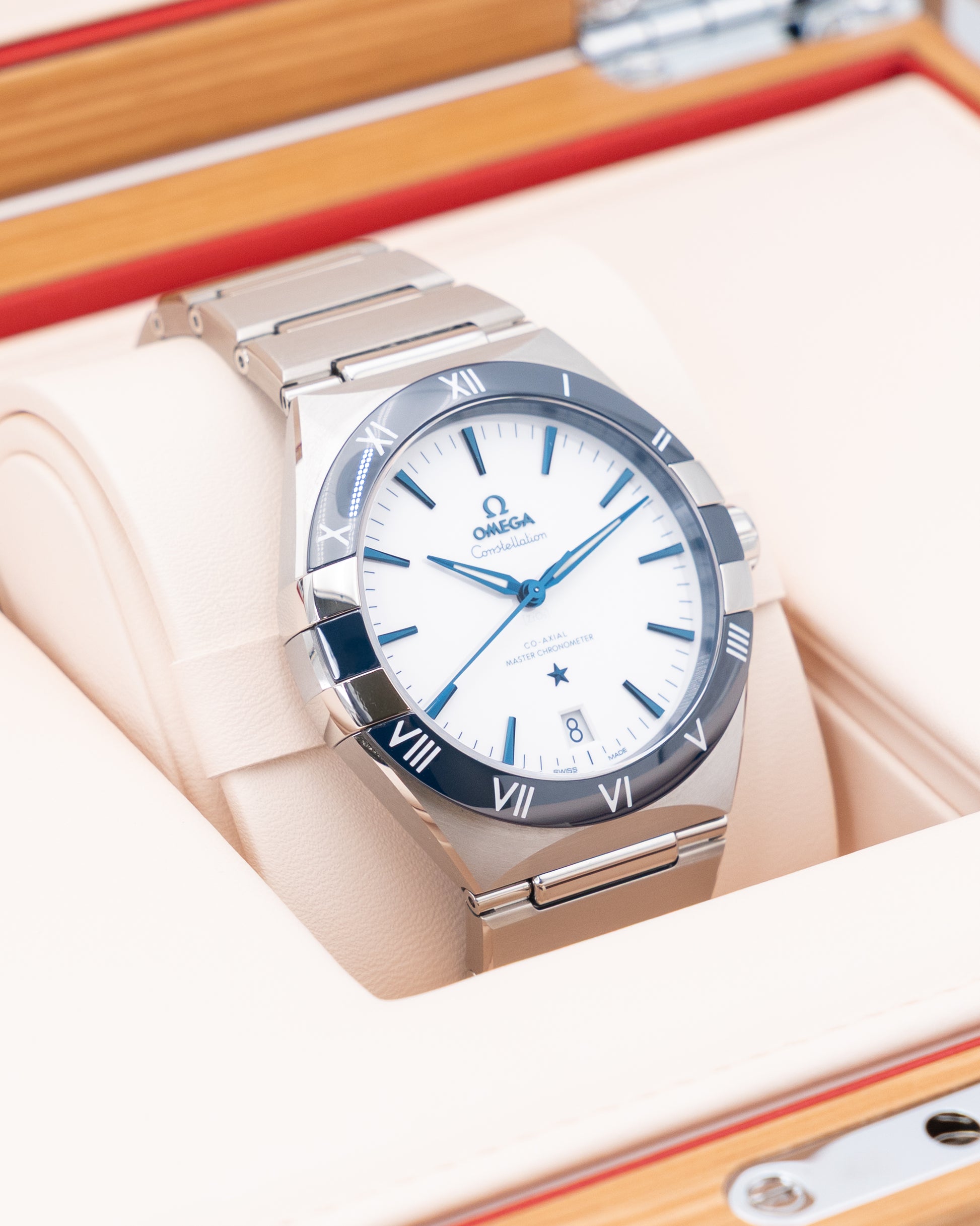 Under the hood, the Constellation is powered by the Omega 8900 caliber, a Master Chronometer movement that guarantees exceptional accuracy and resistance to magnetic fields. With a water resistance of 50 meters, it is suitable for everyday wear while maintaining its luxurious appeal. This timepiece is a statement of refined taste and technical excellence, appealing to collectors and enthusiasts who appreciate both style and cutting-edge horology.