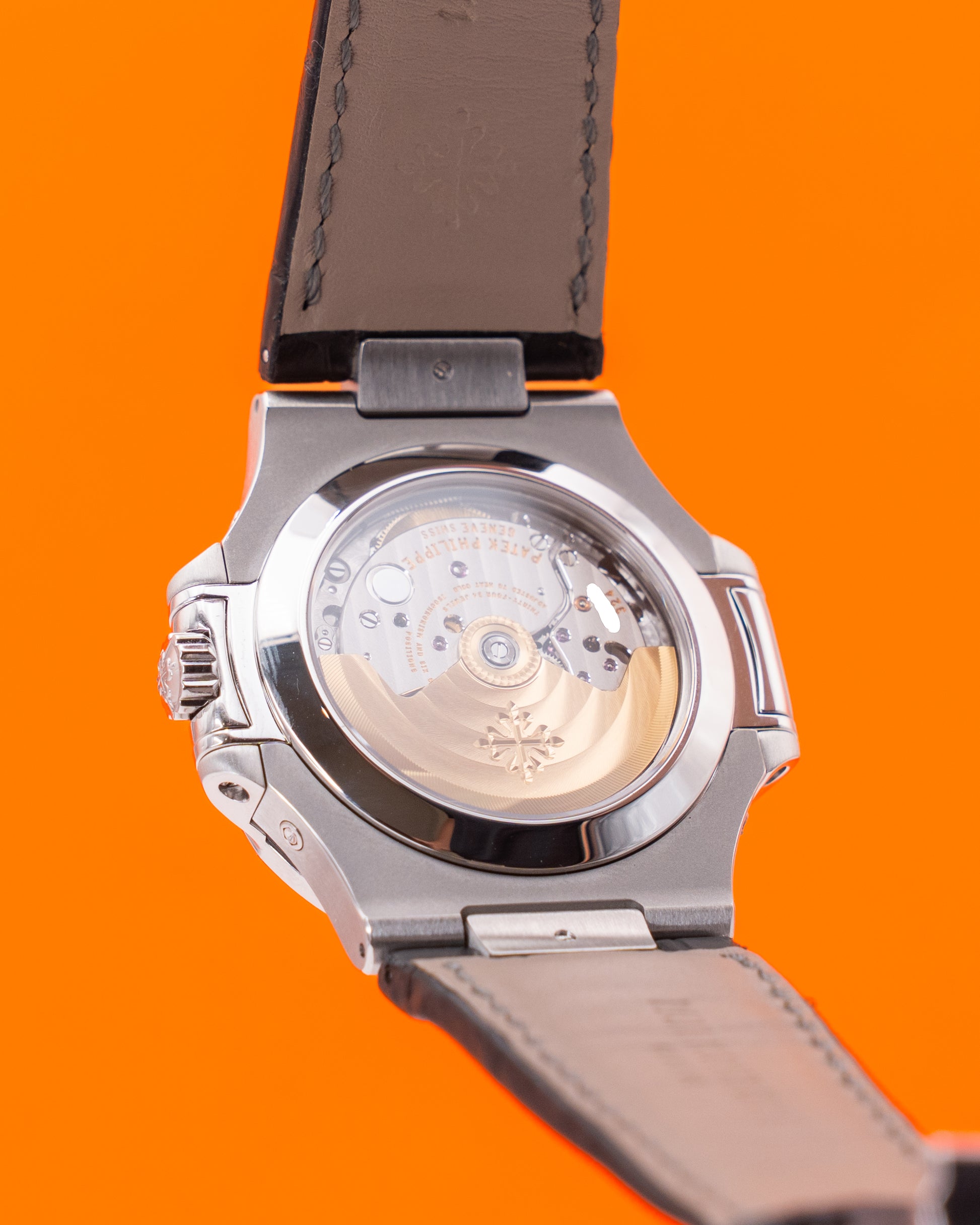 Powered by the Caliber 324 S QA LU 24H/303, this Nautilus offers an annual calendar complication, displaying the day, date, month, and moon phase with remarkable clarity and precision. The movement is visible through the sapphire crystal case back, revealing exquisite finishing and the 21K gold rotor that defines Patek Philippe’s craftsmanship. Combining utility with luxury, the 5726A-001 stands as one of the most versatile and desirable references within the Nautilus collection, perfectly balancing sporty refinement with horological prestige.