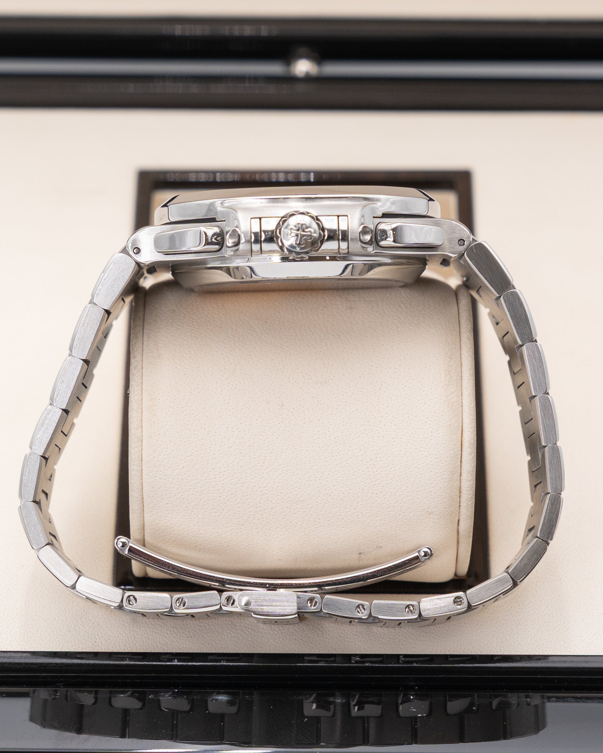 At its heart lies the self-winding Caliber CH 28-520 C, a masterfully engineered chronograph movement that blends traditional craftsmanship with modern innovation. Featuring a flyback function, 60-minute counter, and date display, it offers exceptional performance and precision. With its combination of robust construction and exquisite finishing, the Nautilus 5980 embodies Patek Philippe’s unmatched attention to detail and technical mastery. A modern icon in the world of haute horlogerie, it remains one of the most sought-after expressions of luxury sport watch design.