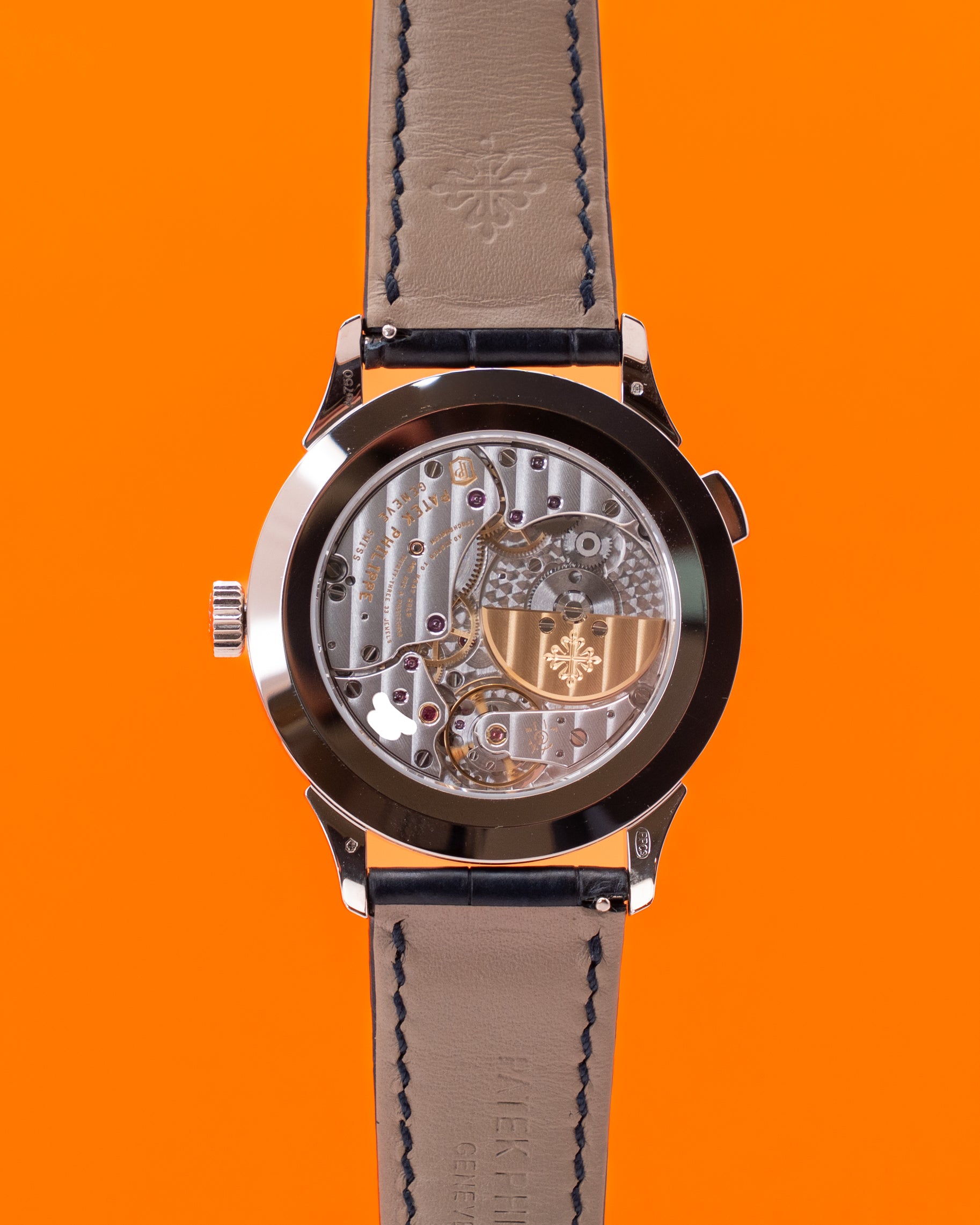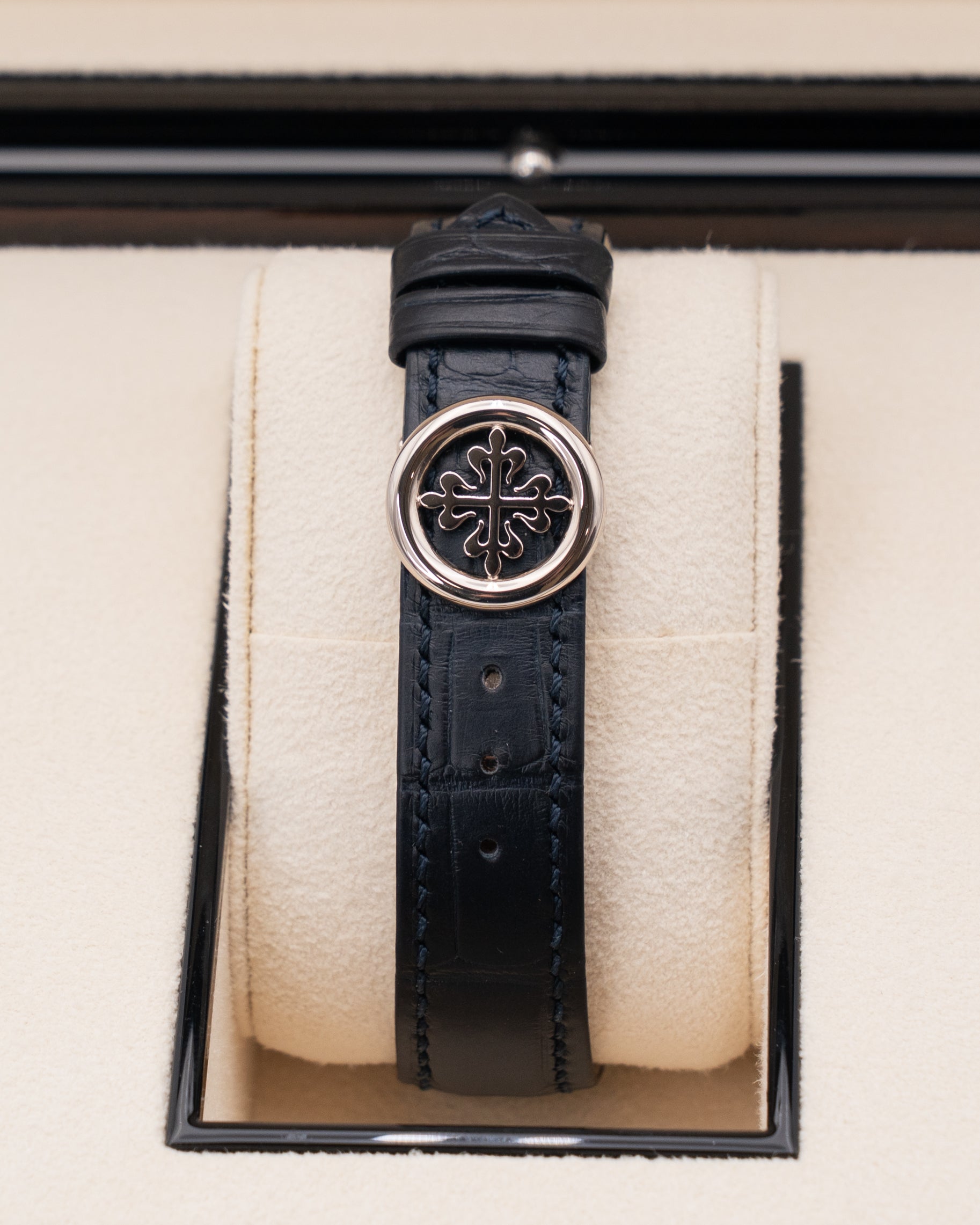 Inside, the watch is powered by the self-winding Caliber 240 HU, renowned for its slim profile and meticulous finishing visible through the sapphire caseback. Paired with a hand-stitched alligator leather strap, the 5231G-001 embodies the perfect fusion of worldliness, tradition, and artistry. Its 30-meter water resistance and practical world time complication make it as functional as it is beautiful—a true collector’s piece that celebrates global sophistication and the enduring excellence of Patek Philippe craftsmanship.