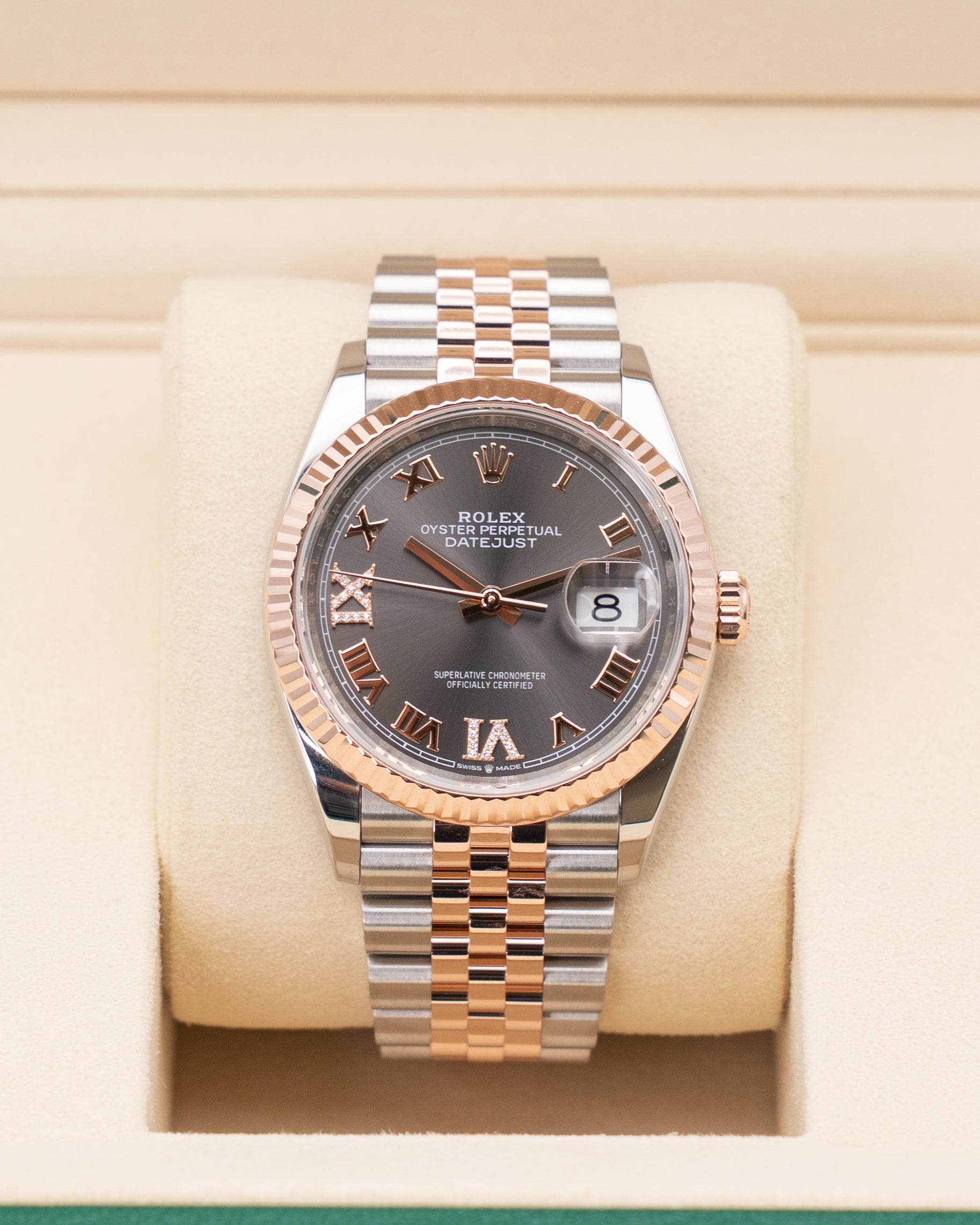 Rolex Datejust 126231 36mm Stainless Steel / Everose / Fluted / Dark Rhodium Diamond Roman / Jubilee 2025