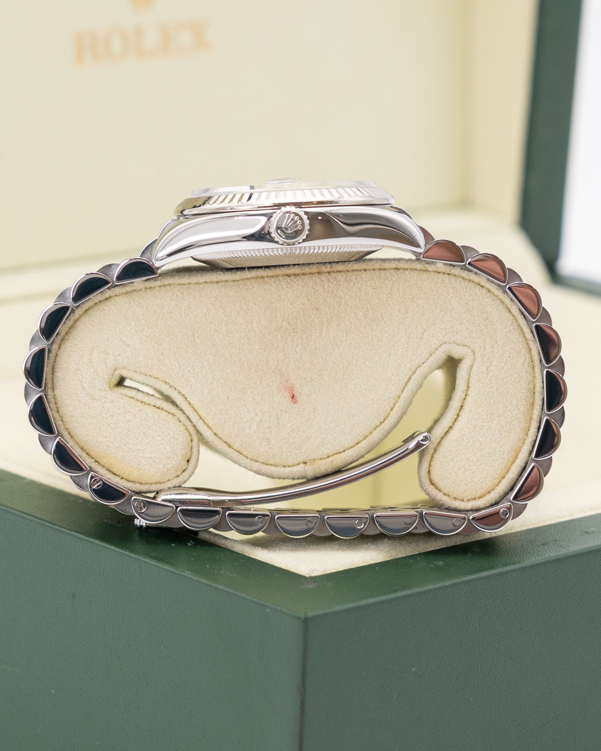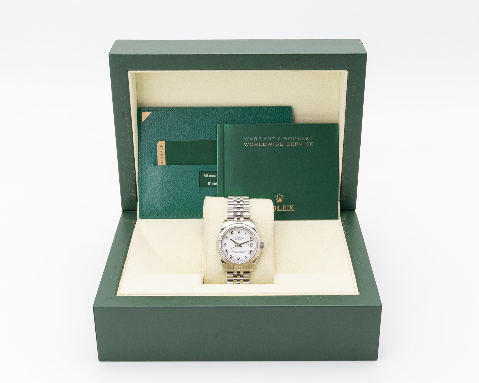 The Rolex Datejust 31 Ref. 178274 WRJ is a refined and timeless expression of classic Rolex elegance. Its 31mm case is crafted from durable stainless steel and complemented by an 18K white gold fluted bezel, creating a sophisticated two-tone aesthetic that radiates understated luxury. The crisp white dial features striking Roman numeral hour markers and polished hands, exuding a clean, traditional charm that embodies the enduring appeal of the Datejust line. Perfectly proportioned, it strikes a balance between elegance and practicality for everyday wear.
