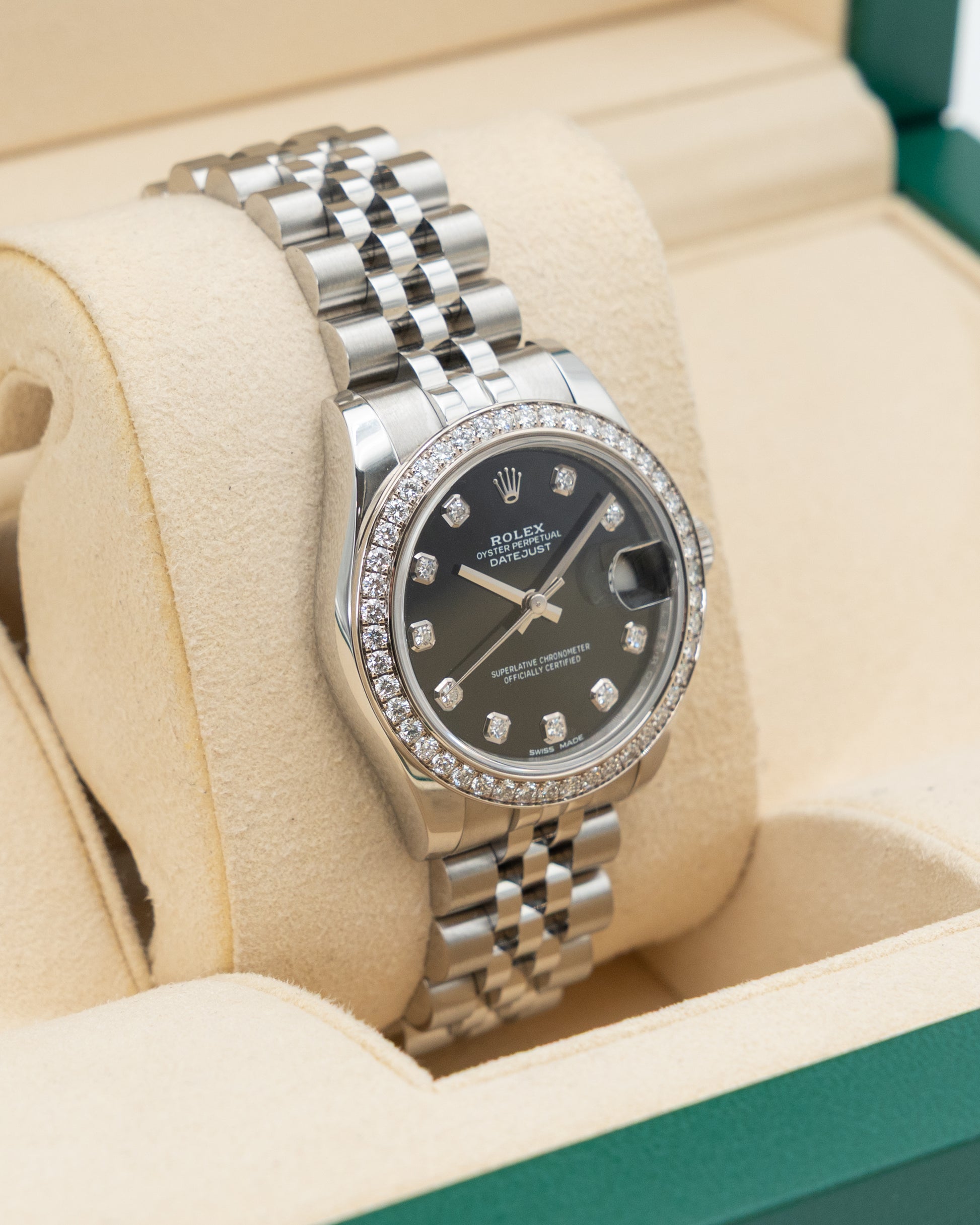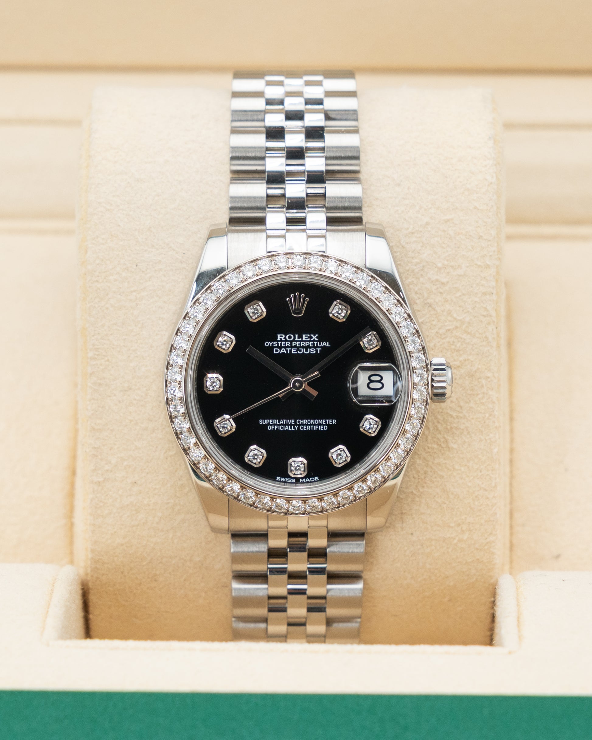 Rolex Datejust 31mm 178384 Black Diamond Dial Diamond Bezel Jubilee