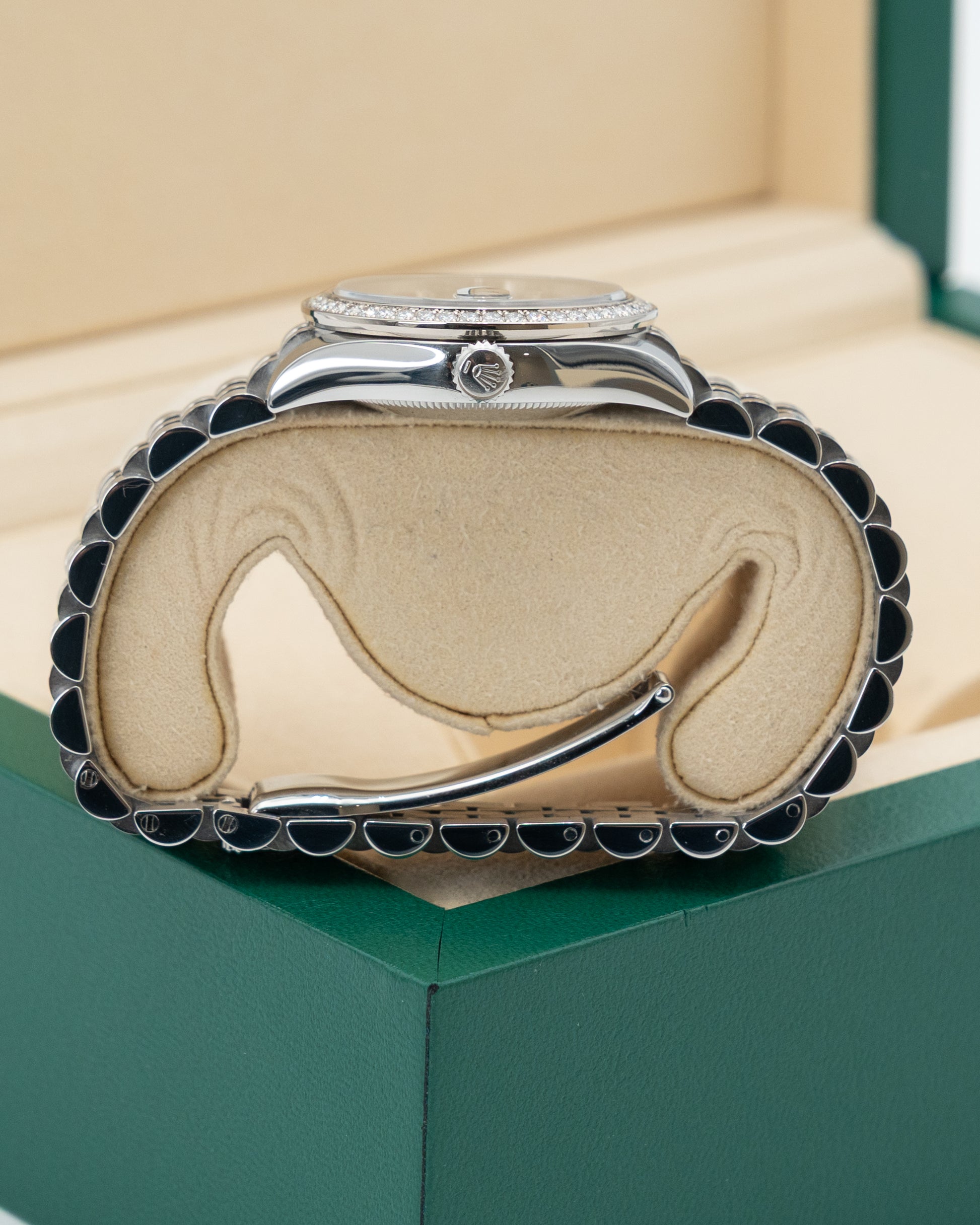 The Rolex Datejust 31 178384 BKDJ blends refined sophistication with timeless Rolex craftsmanship. Its 31mm case, crafted from steel and 18K white gold, strikes the perfect balance between elegance and versatility. The black diamond-set dial adds a luxurious radiance, with sparkling hour markers that contrast beautifully against the deep tone of the dial. The signature white gold fluted bezel enhances the watch’s brilliance, catching the light from every angle and reinforcing its classic allure.