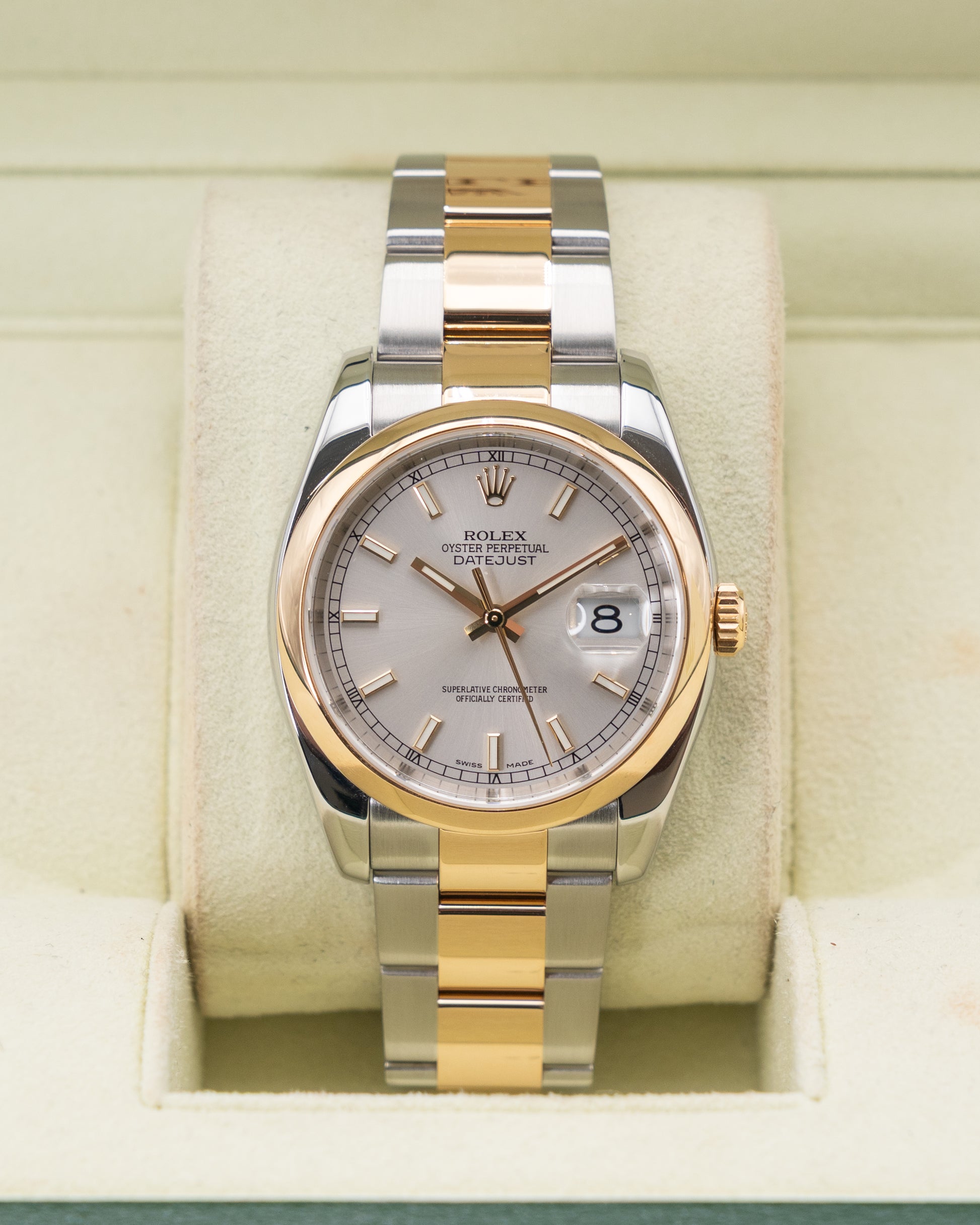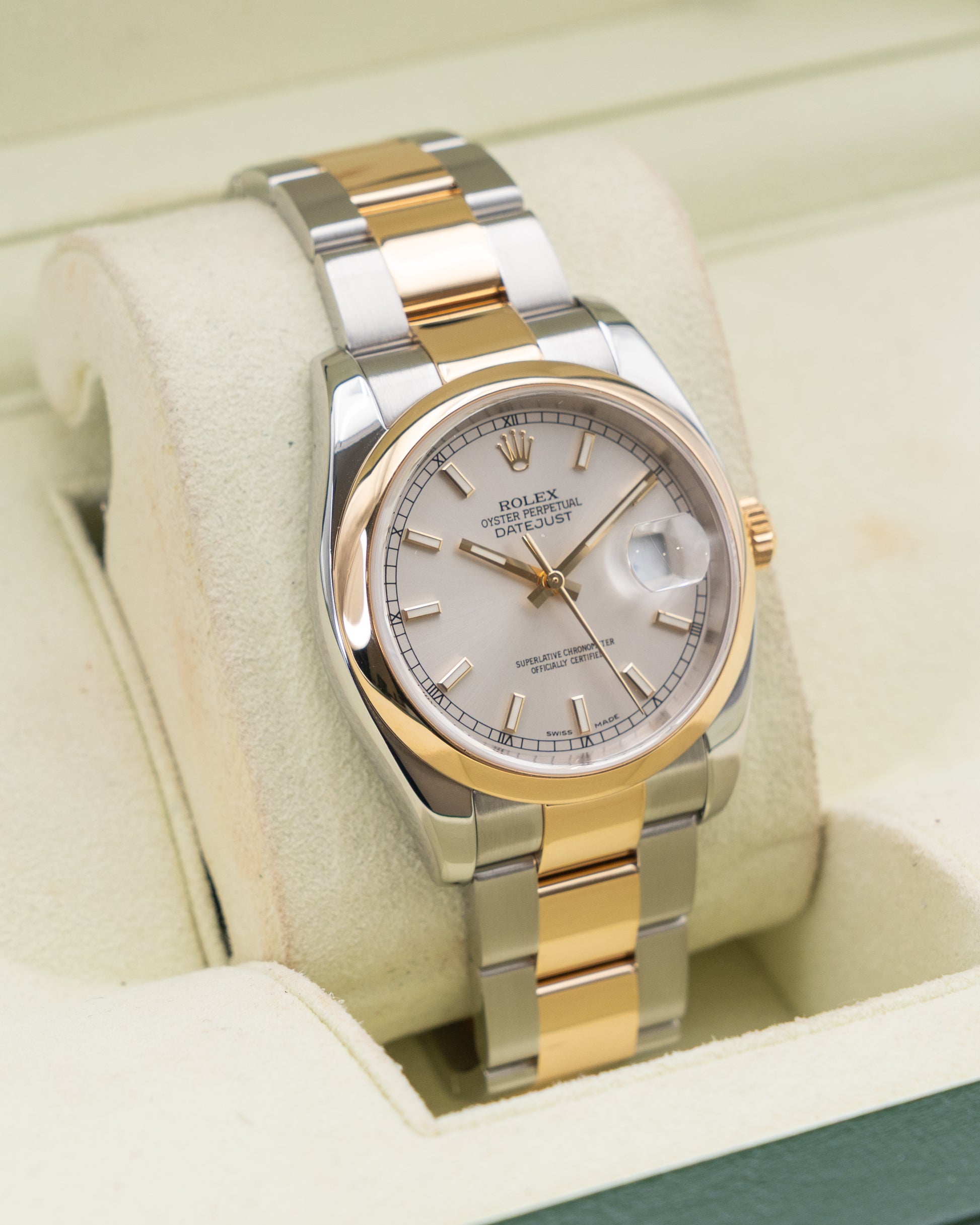 Rolex Datejust 36mm 116203 Two Tone Yellow Gold Smooth Oyster Silver Dial 2014