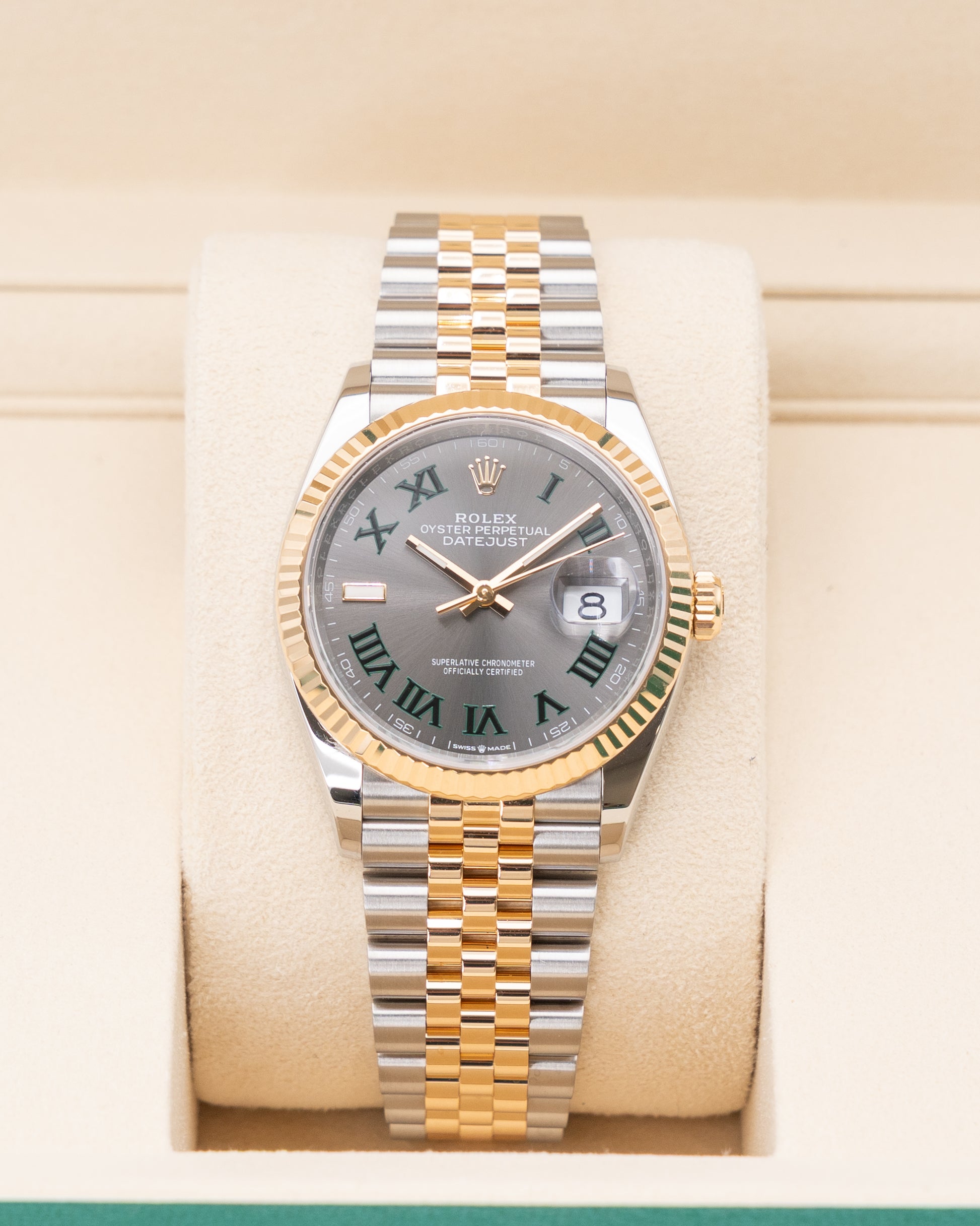 Rolex Datejust 36mm 126233 Yellow Gold Wimbledon Dial Fluted Jubilee 2025