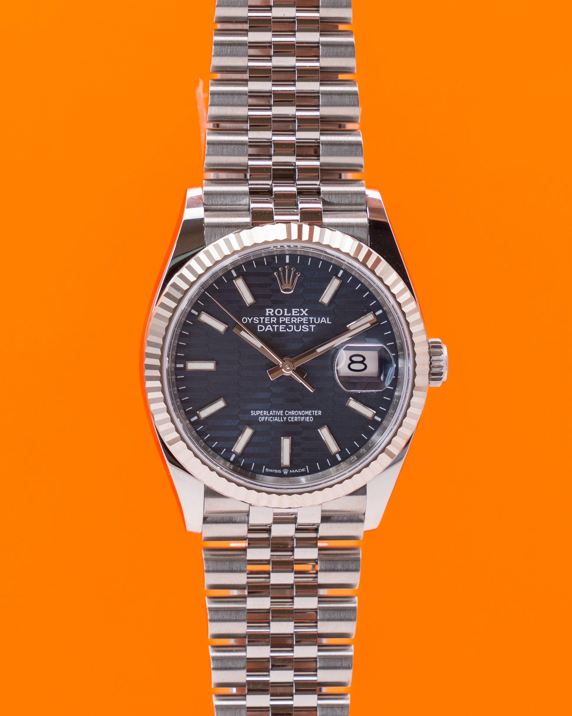 Rolex Datejust 36mm 126234 Blue Motif Dial Fluted Jubilee 2022
