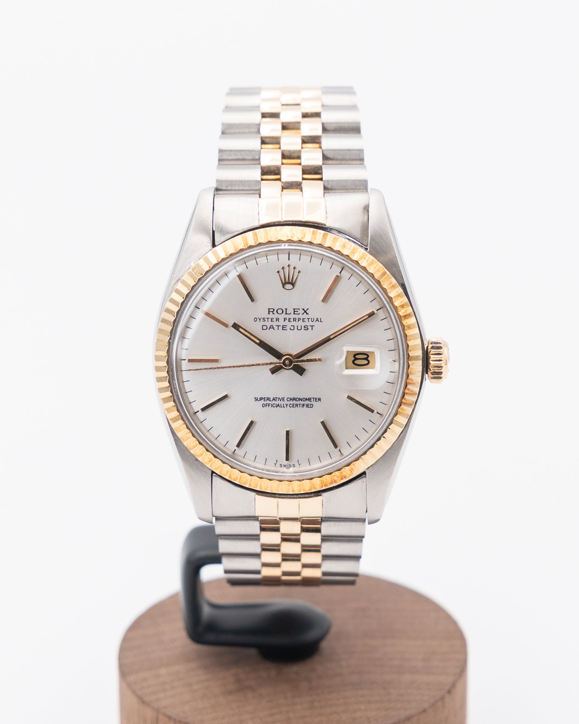The Rolex Datejust 16013 is a classic expression of Rolex’s timeless design, blending versatility with understated luxury. Measuring 36mm, the case is crafted from stainless steel and accented with an 18K yellow gold bezel and bracelet links, giving it the iconic two-tone look that has made the Datejust line so enduring. Paired with the elegant Jubilee bracelet, the watch wears with both comfort and sophistication, making it a versatile choice for daily wear or formal occasions.