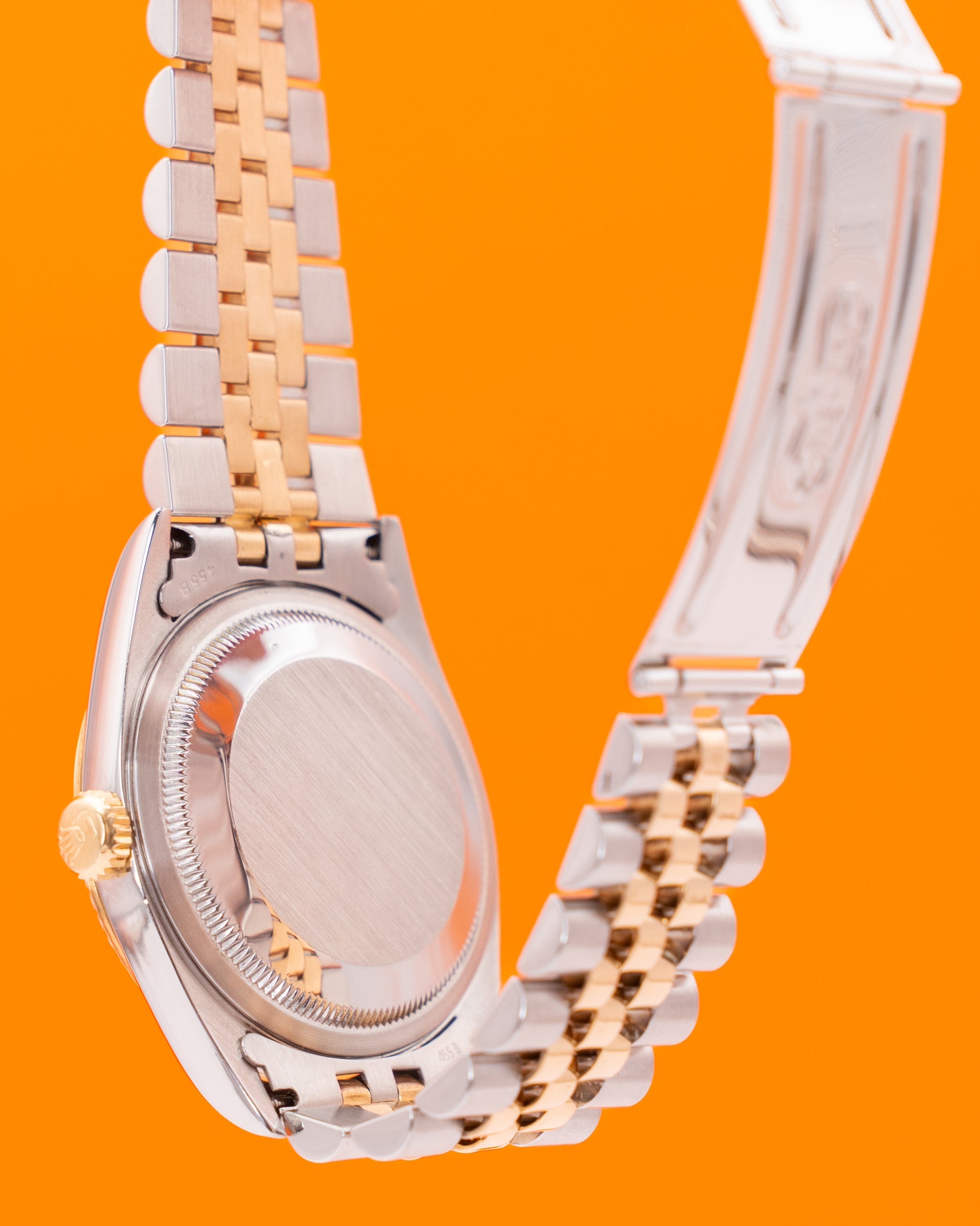 The Rolex Datejust Ref. 16233 is a timeless classic that embodies the perfect blend of elegance, functionality, and luxury. Its 36mm stainless steel case is paired beautifully with an 18K yellow gold fluted bezel, creating the signature two-tone aesthetic that has defined the Datejust collection for decades. The champagne dial exudes sophistication, featuring gold-tone hour markers and the iconic Cyclops lens over the date window at 3 o’clock for enhanced readability. This model captures the essence of Rolex’s enduring design language—refined, balanced, and unmistakably distinguished.