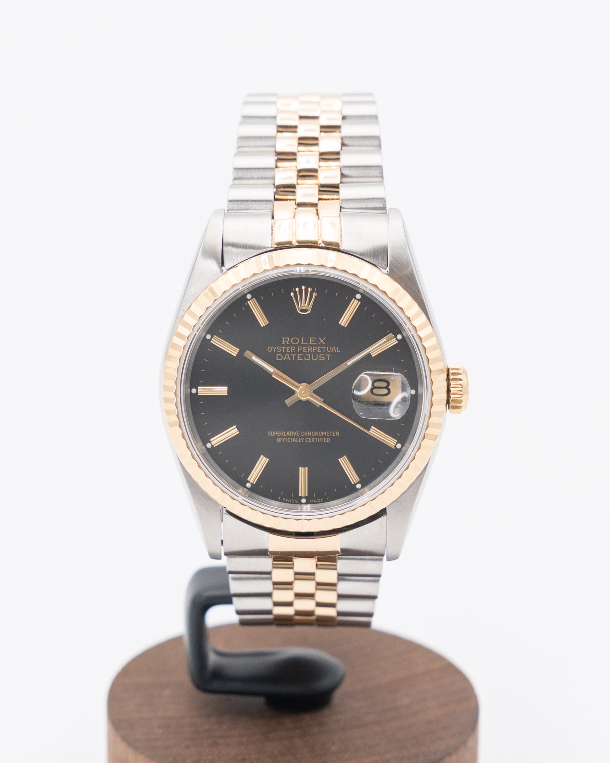 Rolex Datejust 36mm 16233 Black Stick Dial Two Tone Fluted Jubilee