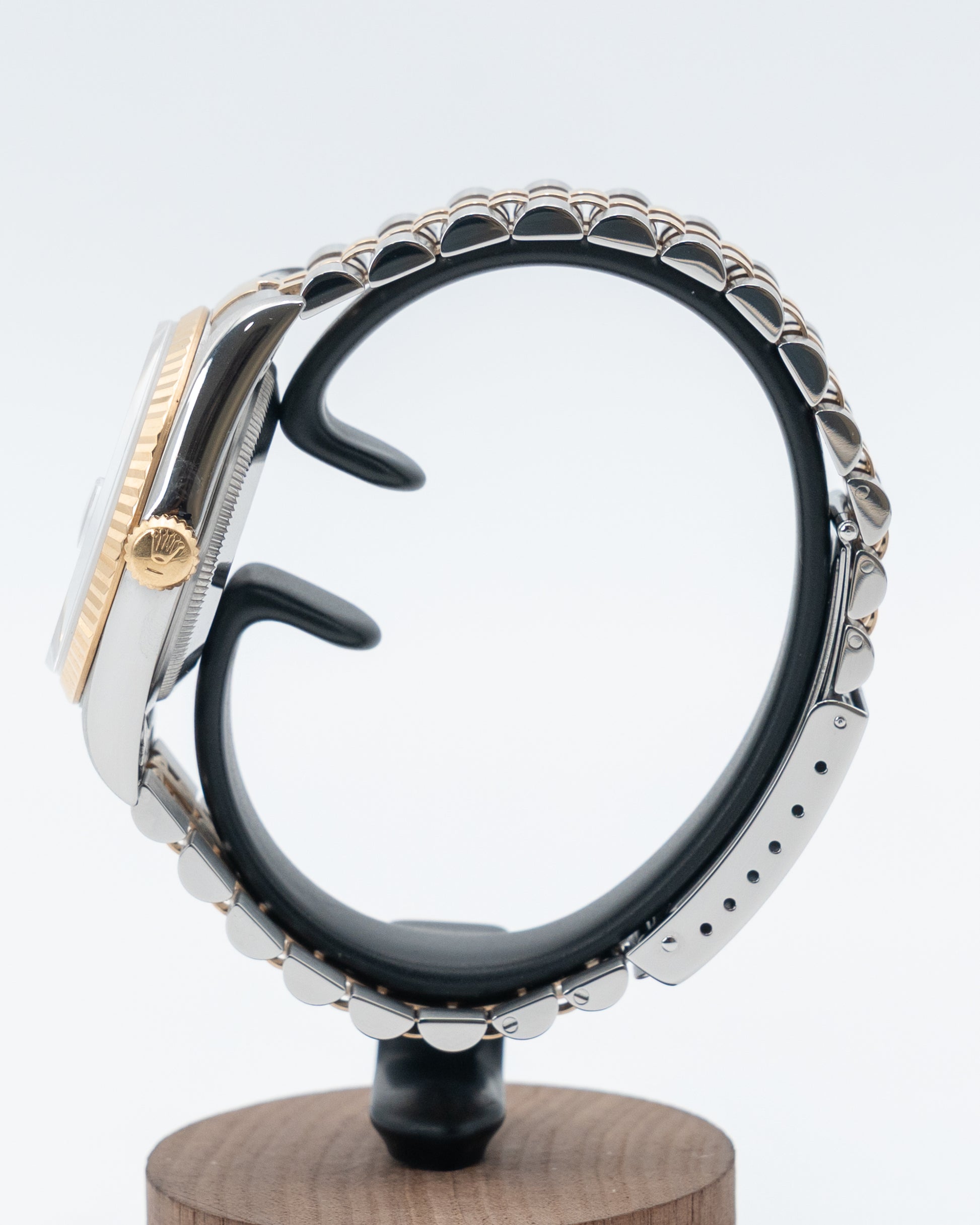 The Rolex Datejust 16233 is a quintessential symbol of timeless luxury and enduring craftsmanship. Featuring a 36mm case crafted from stainless steel and 18K yellow gold, this two-tone design embodies the perfect balance between strength and elegance. Its champagne dial exudes warmth and sophistication, complemented by gold hour markers and the signature Cyclops lens over the date window for enhanced legibility. The iconic fluted bezel in yellow gold adds a touch of distinction that makes this model instantly recognizable as a classic Rolex.