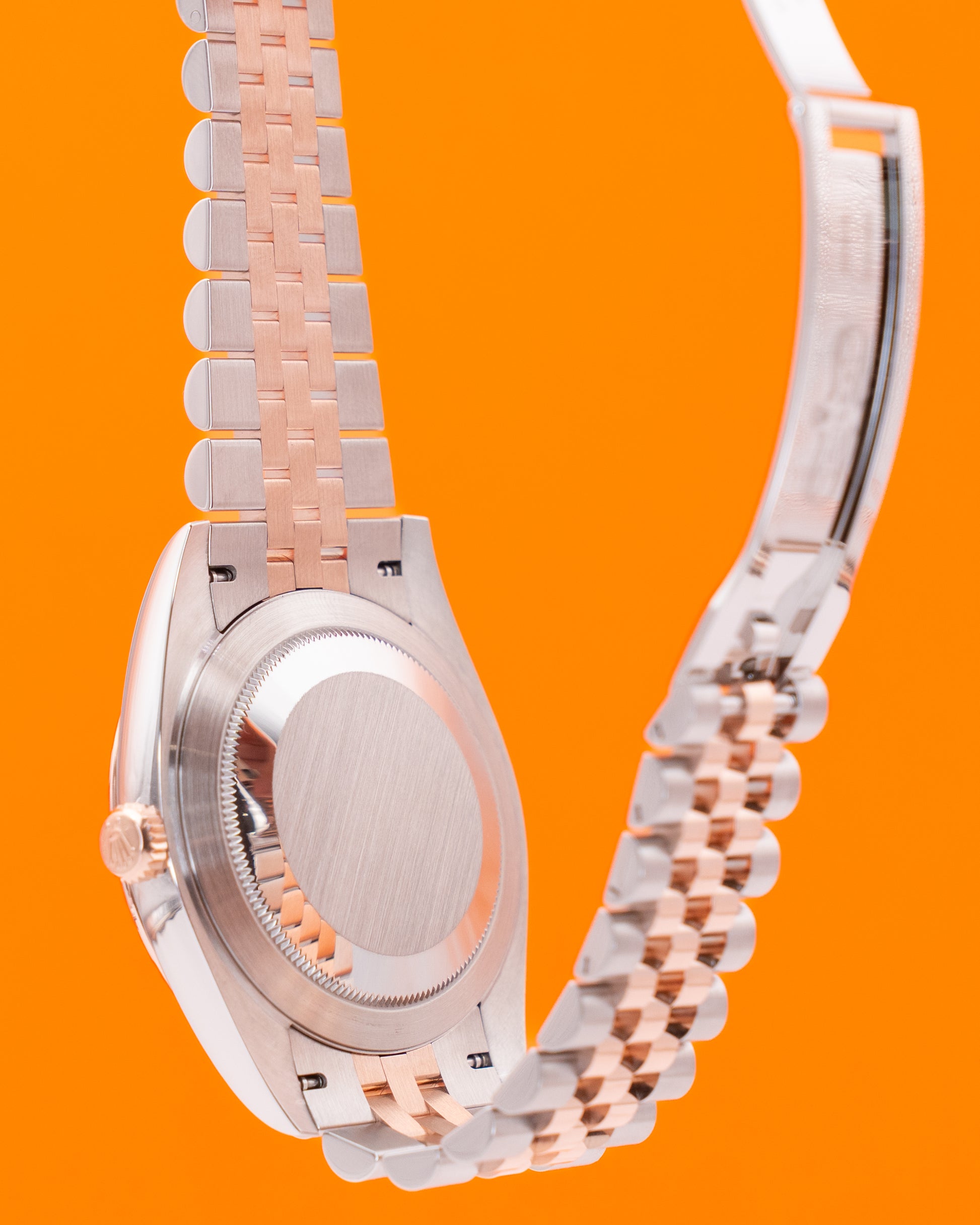 The Rolex Datejust 41 126331-0016 is an elegant fusion of contemporary proportions and timeless design. Its 41 mm case, crafted from a blend of Oystersteel and Everose gold, delivers a warm, luxurious contrast while ensuring durability and corrosion resistance. The slate dial, enhanced by the signature Rolex sunray finish, gives off subtle tonal shifts in different lighting, adding depth and sophistication. The fluted Everose gold bezel and robust Oyster bracelet complete the refined look, striking a balance between classic form and modern presence.