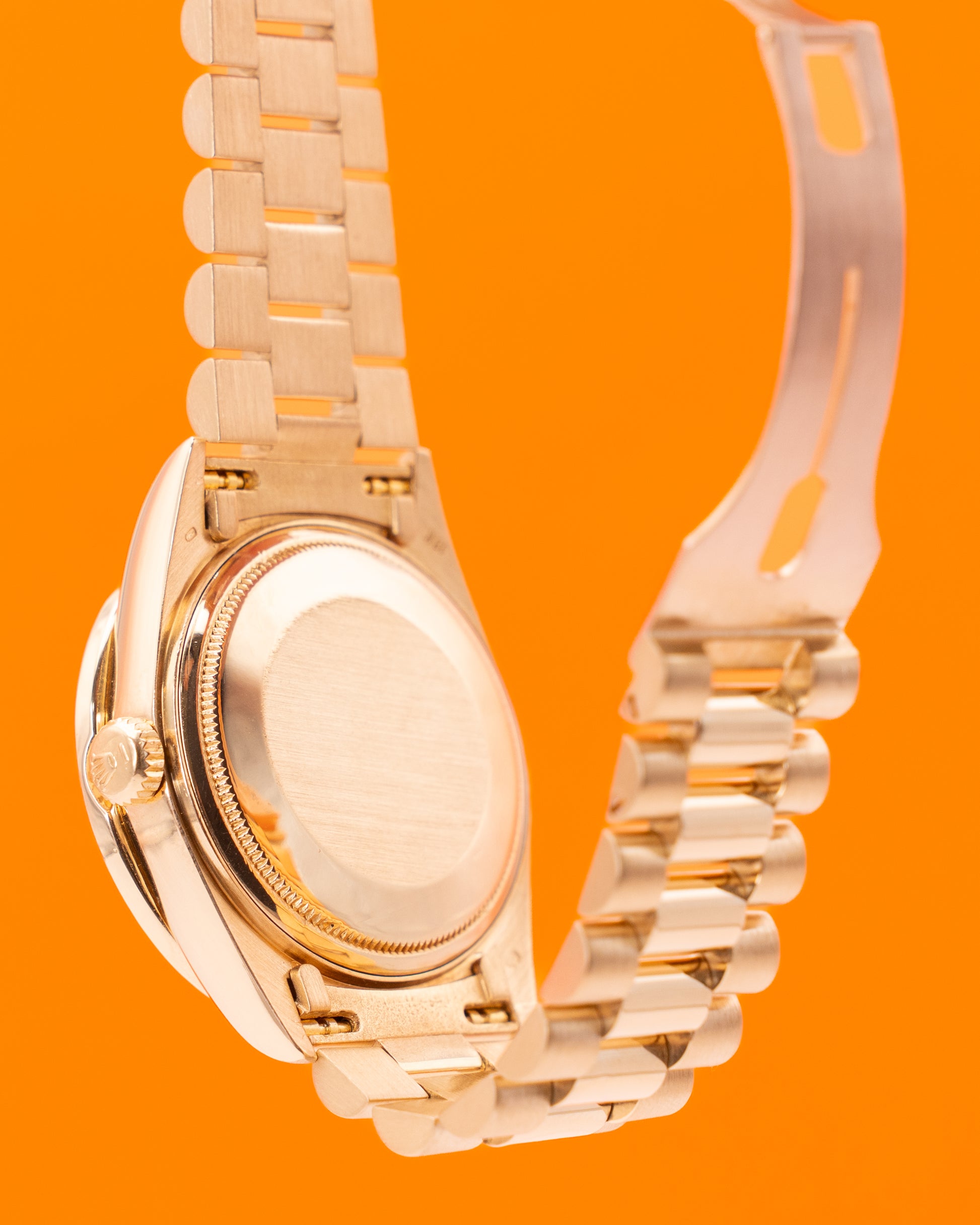 At its heart, the watch houses the Caliber 3055, an automatic movement renowned for its reliability and precision. The 18038 was the first Day-Date reference to feature a quickset date mechanism, adding convenience to its technical excellence. Whether worn on a matching President bracelet or an elegant leather strap, this model captures the essence of Rolex’s mastery in both design and mechanical innovation—making it a defining piece in the brand’s storied legacy.