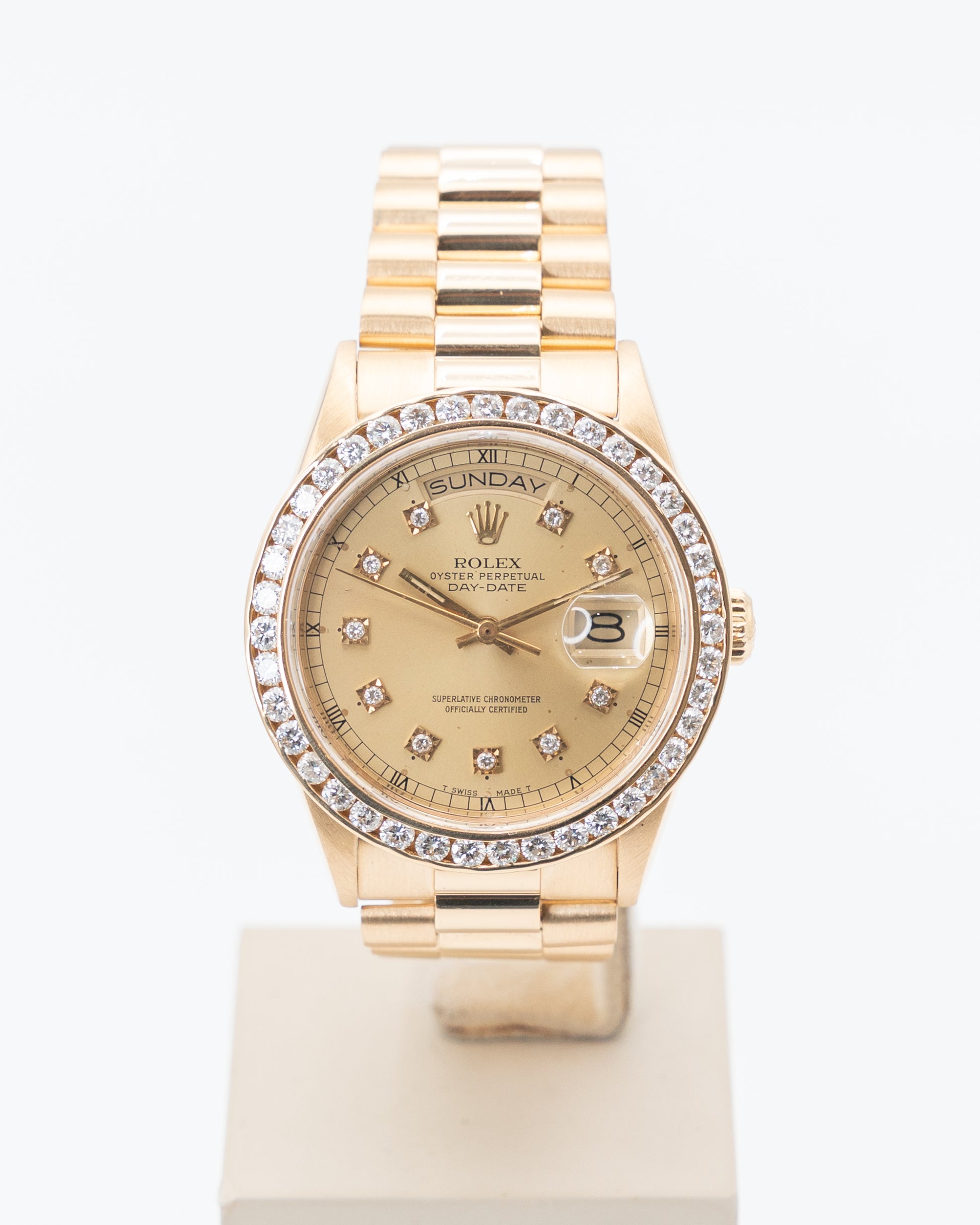 Rolex DayDate 36mm 18038 Yellow Gold Aftermarket Champagne Diamond Dial and Bezel