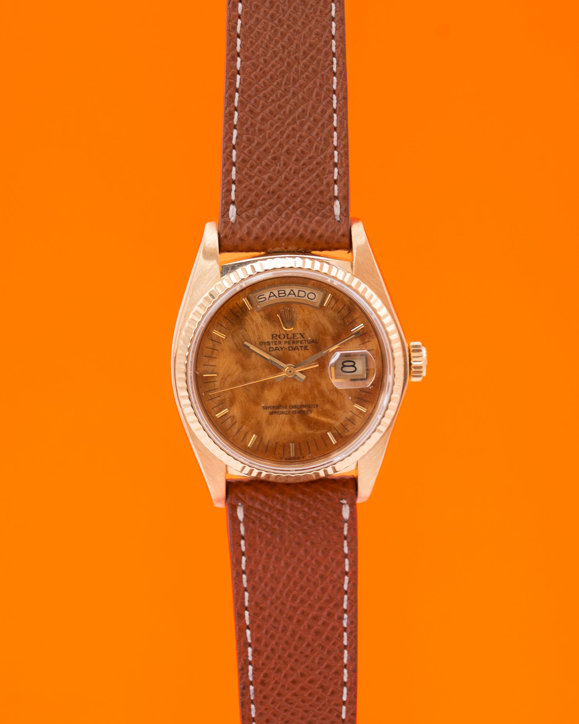 Rolex DayDate 36mm 18038 Yellow Gold Birch Wood Dial Spanish Day Wheel