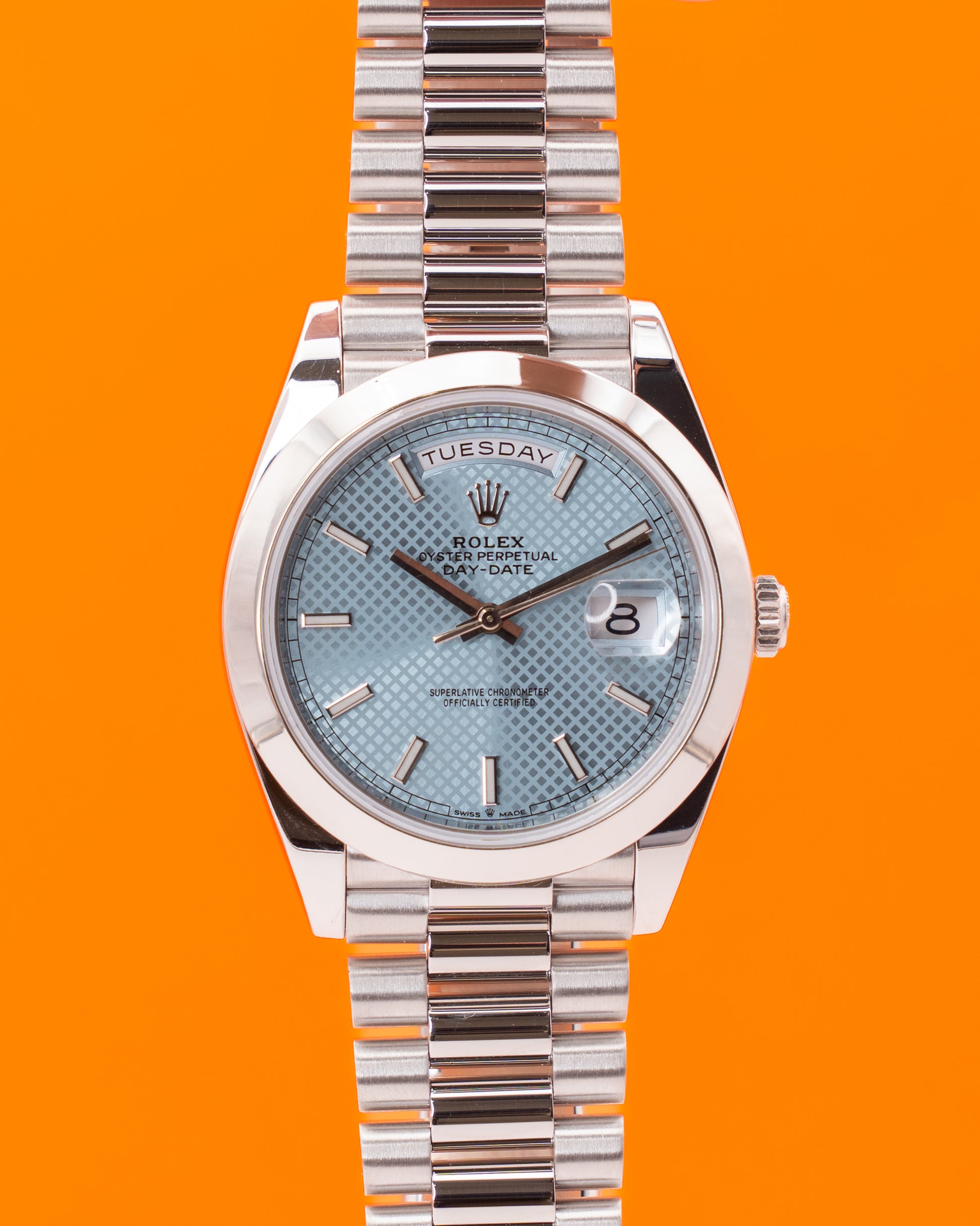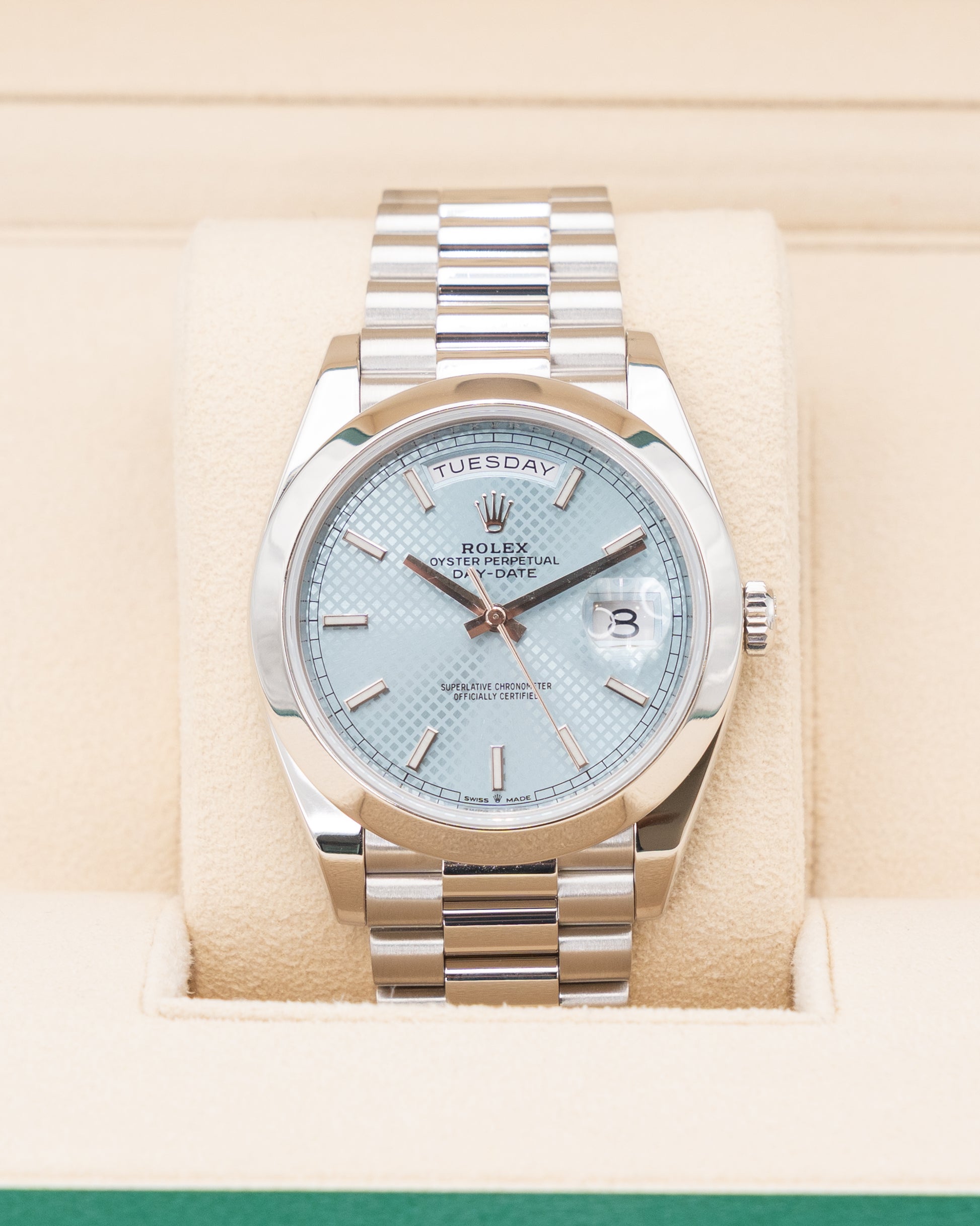 Rolex DayDate 40mm 228206 Platinum Ice Bleu Motif Dial 2019