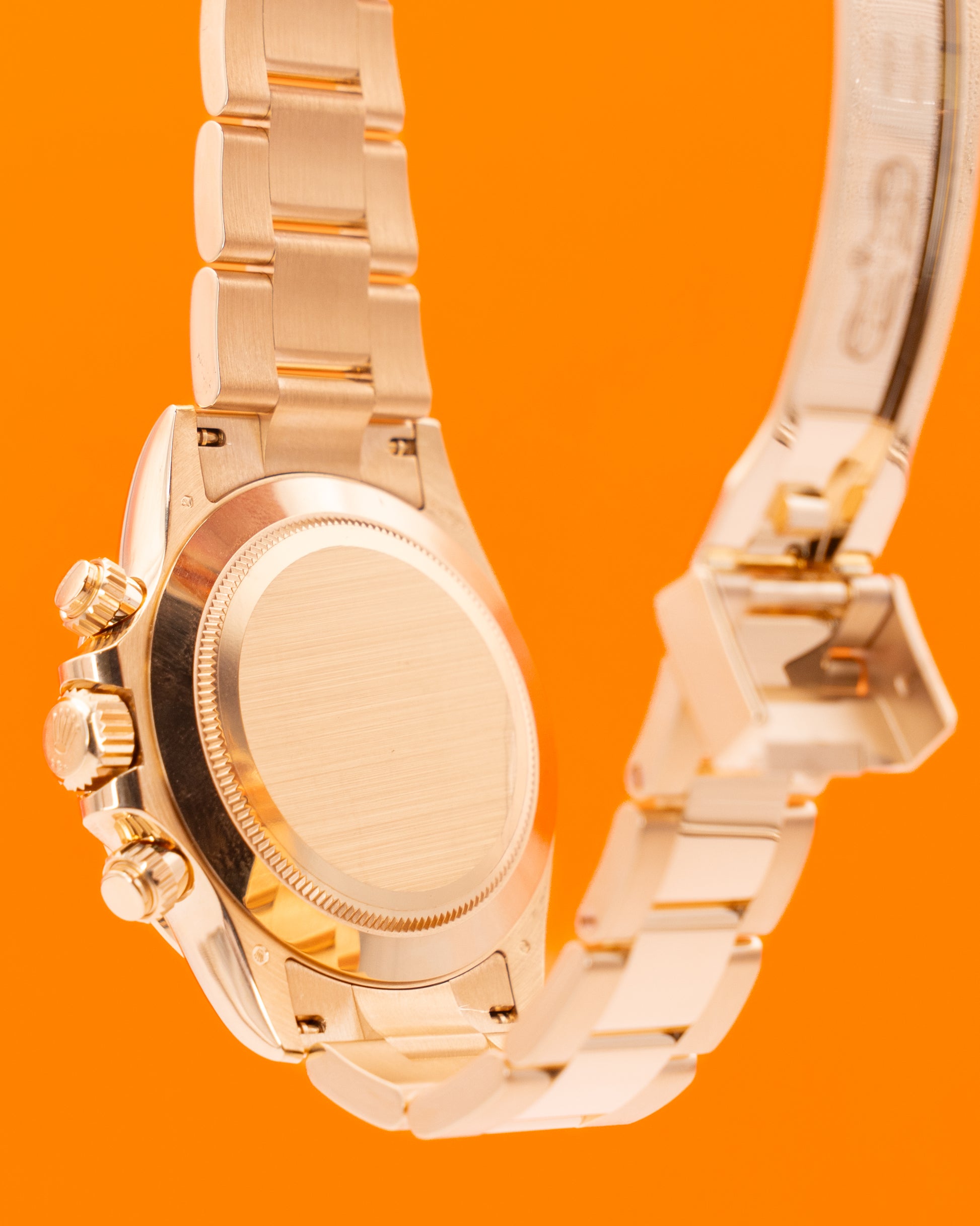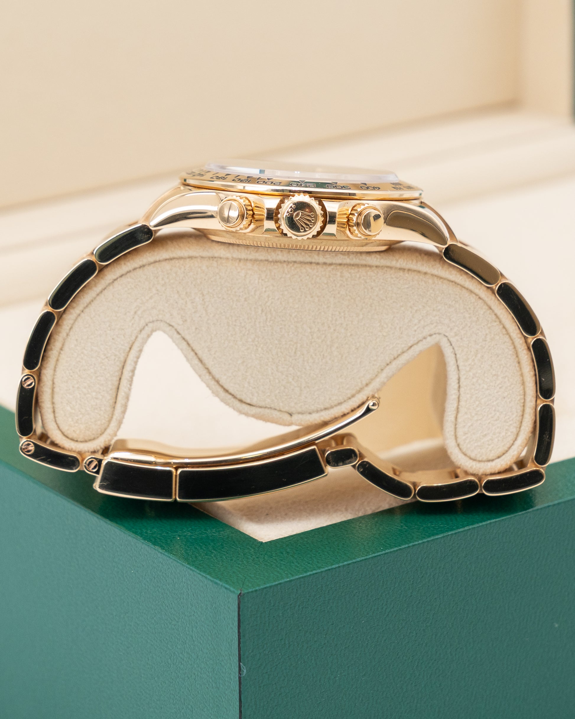 At the heart of this timepiece lies the Rolex Caliber 4130, a self-winding chronograph movement celebrated for its precision, efficiency, and robustness. The Oyster bracelet, also crafted from yellow gold, delivers seamless comfort and an unmistakable sense of prestige. With a water resistance of 100 meters, this Daytona is not just a statement of luxury but also a testament to Rolex’s enduring engineering excellence. The 116508 GRI stands as one of the most coveted modern Daytona configurations, admired for its rare dial and timeless allure.
