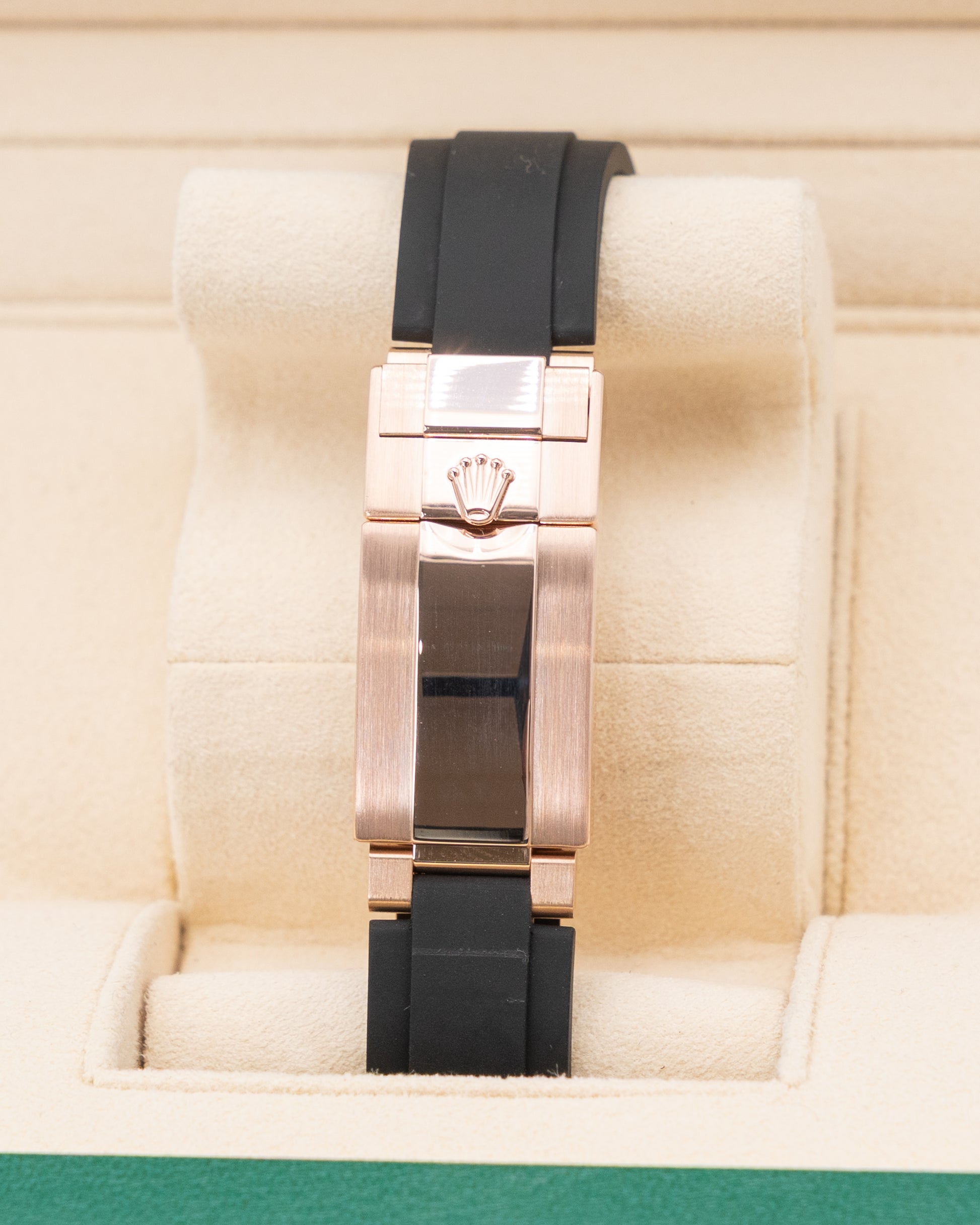 At its heart lies the Caliber 4130, Rolex’s acclaimed self-winding chronograph movement known for its reliability and precision. The Oysterflex bracelet, combining the durability of elastomer with a flexible titanium-nickel blade core, delivers superior comfort and resilience. Water-resistant to 100 meters, this Daytona is more than a statement of style—it’s a tribute to the pursuit of excellence, speed, and enduring craftsmanship.