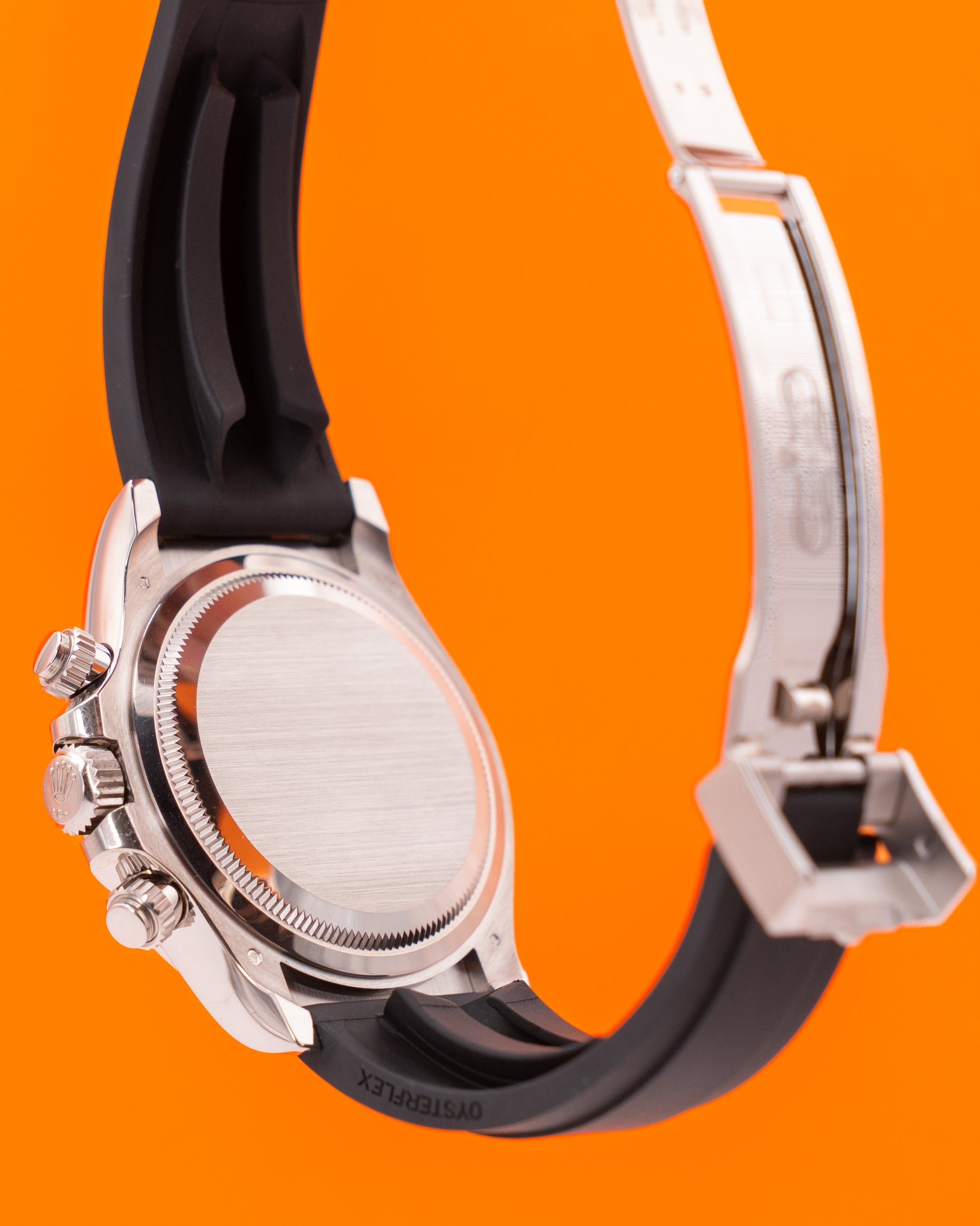 Inside beats the Caliber 4131, Rolex’s latest generation chronograph movement, known for its precision, shock resistance, and efficient Chronergy escapement. The Oysterflex bracelet combines the comfort of high-performance elastomer with the durability of a flexible metal core, ensuring an impeccable fit whether on the track or in daily wear. With a water resistance of 100 meters, the 126519LN “Ghost” Daytona stands as a modern icon—bold, functional, and undeniably sophisticated.