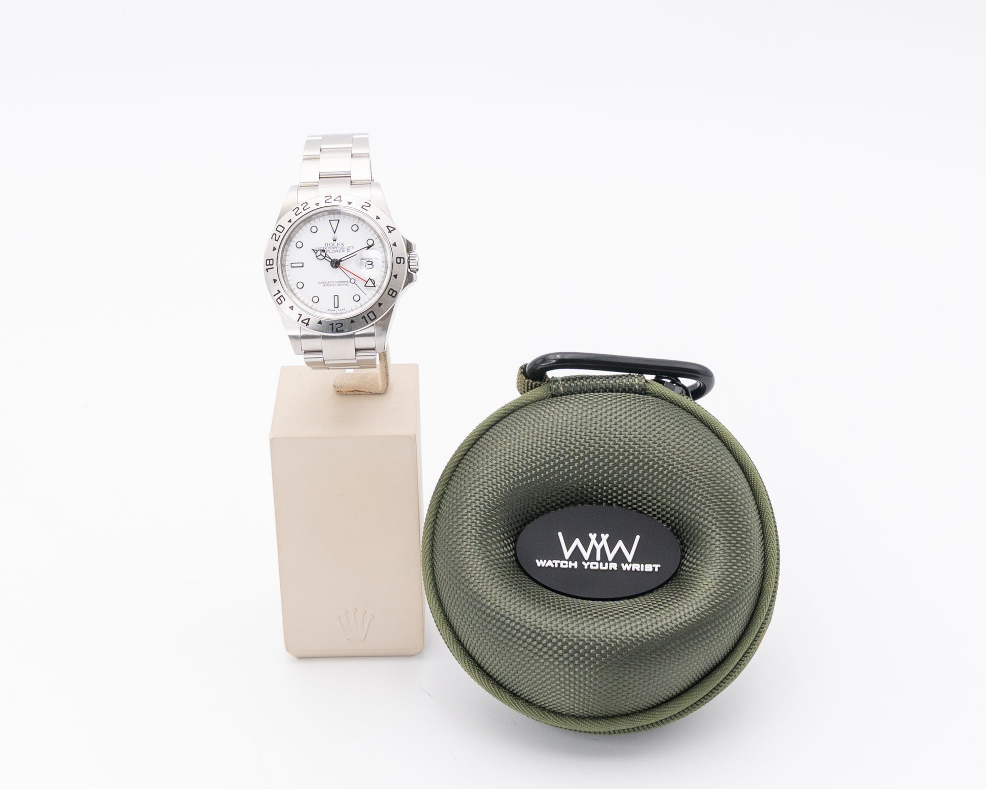 Built for precision and reliability, the Explorer II 16570 houses Rolex’s automatic chronometer-certified movement, ensuring unwavering accuracy in any condition. The solid Oyster bracelet adds both comfort and durability, making it ideal for daily wear or expeditions. As one of Rolex’s most versatile and understated models, the “Polar” Explorer II remains a favorite among collectors for its blend of rugged utility, distinctive design, and enduring sophistication.