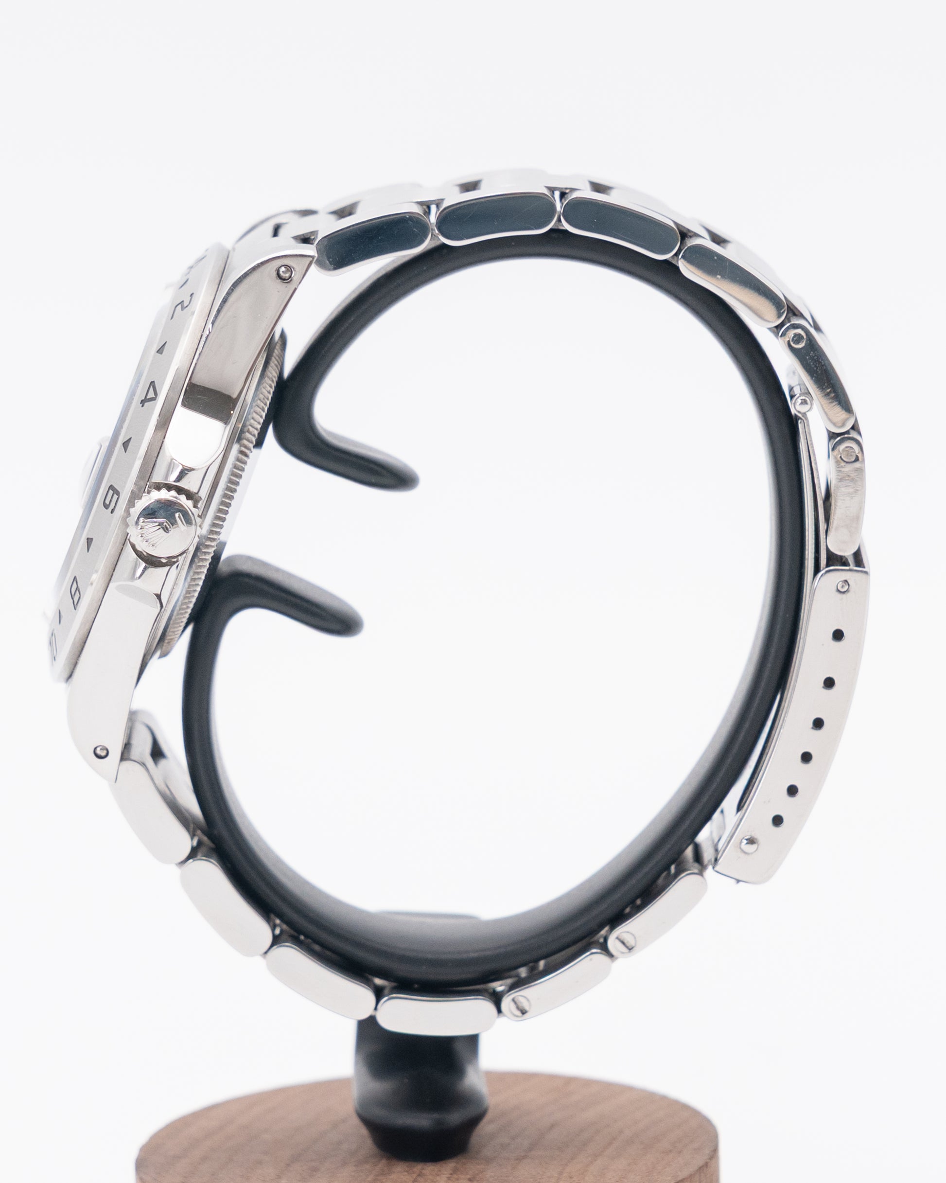 The Rolex Oyster Perpetual Explorer II reference 16570 BK is a rugged and purposeful timepiece designed for adventurers and explorers who demand reliability and precision in extreme conditions. Featuring a robust 40 mm stainless steel case, this model balances durability with wearability, making it suitable for both challenging environments and everyday use. The striking black dial offers excellent legibility, enhanced by large luminescent hour markers and hands, alongside a distinctive 24-hour hand that works with the fixed bezel for dual time zone tracking or distinguishing day from night—a critical feature for spelunkers and polar explorers.
