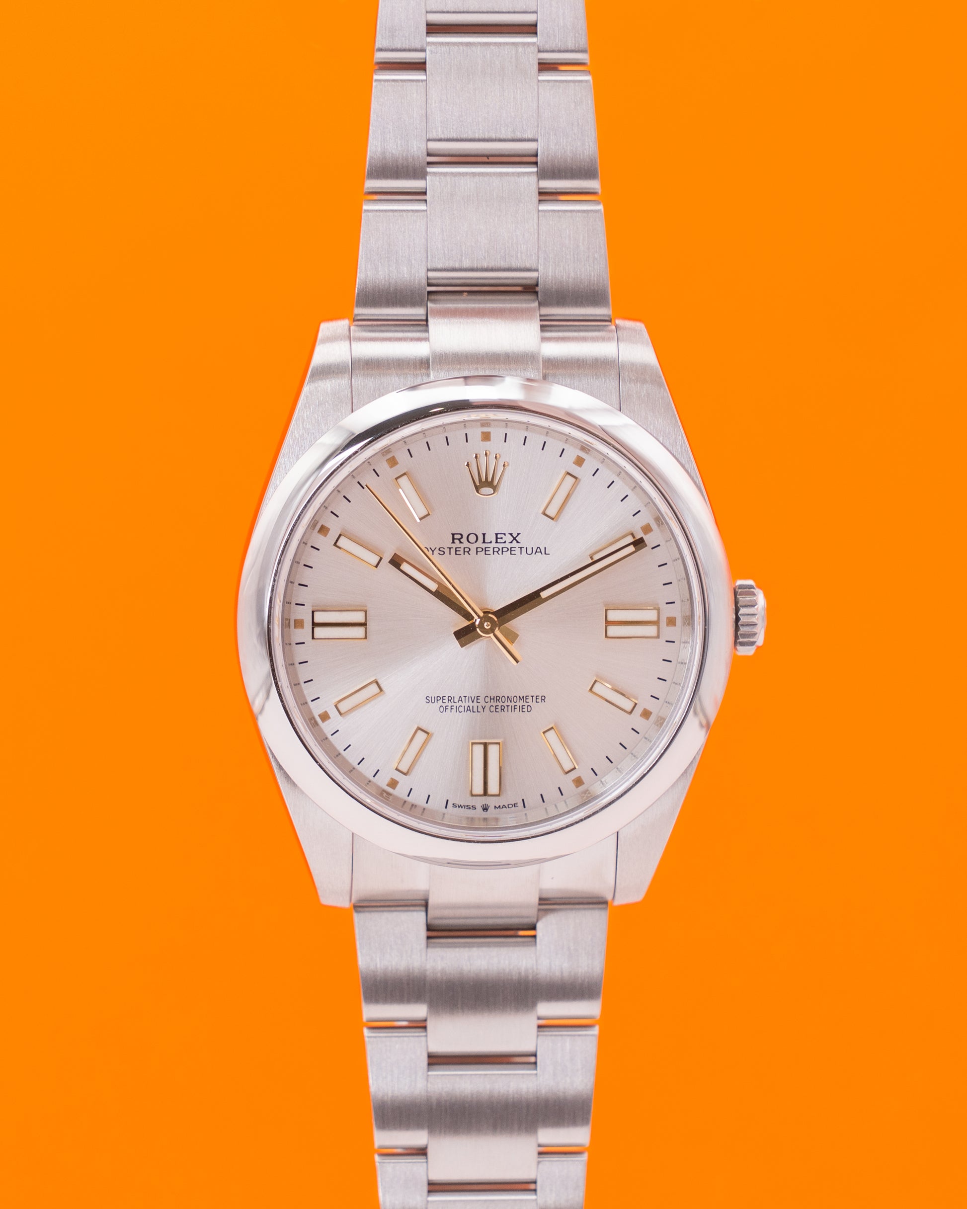 Powered by the self-winding Caliber 3230, the watch delivers exceptional accuracy, durability, and an impressive power reserve of approximately 70 hours. The robust Oyster bracelet, also crafted from stainless steel, combines comfort with strength, featuring the reliable Oysterclasp for a secure fit. Waterproof to 100 meters, the Oyster Perpetual 41 Ref. 124300 SIO is as functional as it is refined—an enduring expression of Rolex’s commitment to precision, performance, and timeless style.