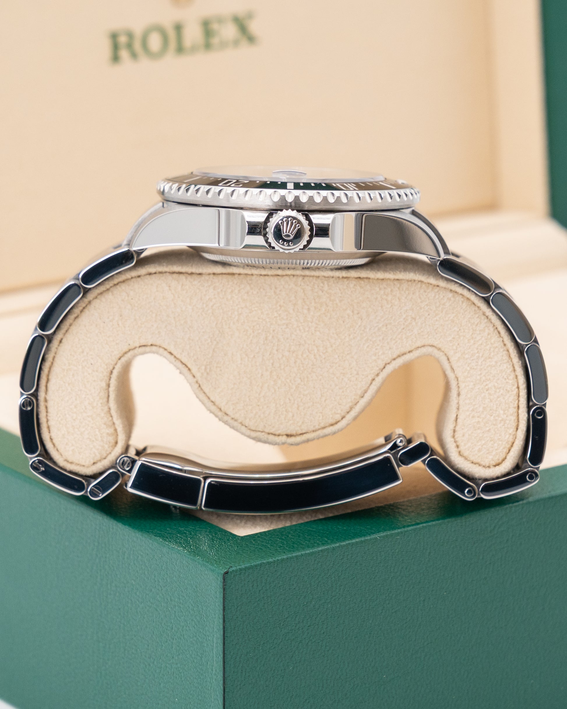 At its core beats the Rolex Caliber 3235, a self-winding movement that exemplifies the brand’s cutting-edge horological innovation. Boasting a 70-hour power reserve and enhanced precision, it stands as a testament to Rolex’s mastery of engineering. Designed to withstand the pressures of deep-sea exploration, the Sea-Dweller is waterproof to an incredible depth of 1,220 meters (4,000 feet). Combining professional performance with unmistakable Rolex style, this timepiece is the ultimate expression of durability, heritage, and technical excellence.