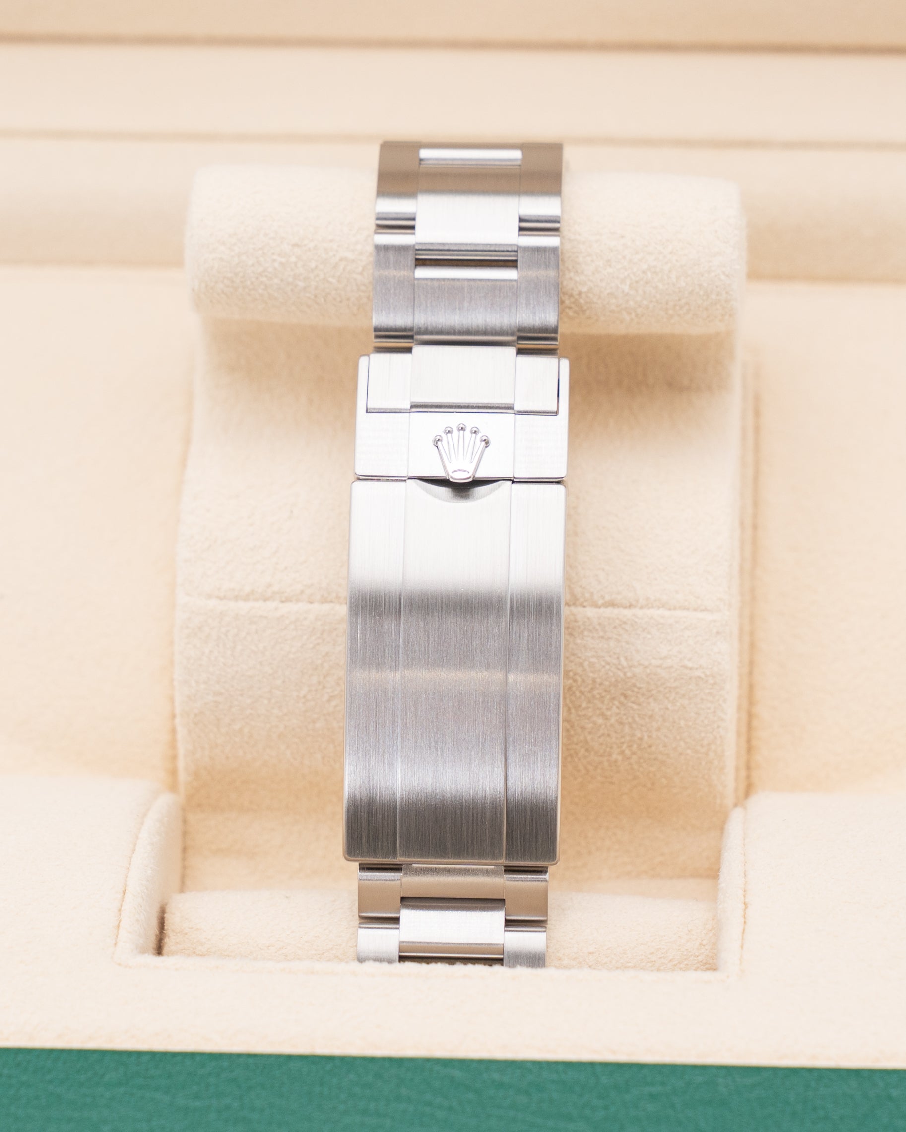 At its core lies the Caliber 3230, Rolex’s state-of-the-art movement renowned for its precision, durability, and 70-hour power reserve. Certified as a Superlative Chronometer, it guarantees exceptional performance both on land and at sea. The watch is waterproof to 300 meters, making it equally suitable for professional diving and daily wear. The 124060 stands as a benchmark in modern sports watchmaking—offering Rolex’s hallmark robustness and refinement in its purest, most essential form.