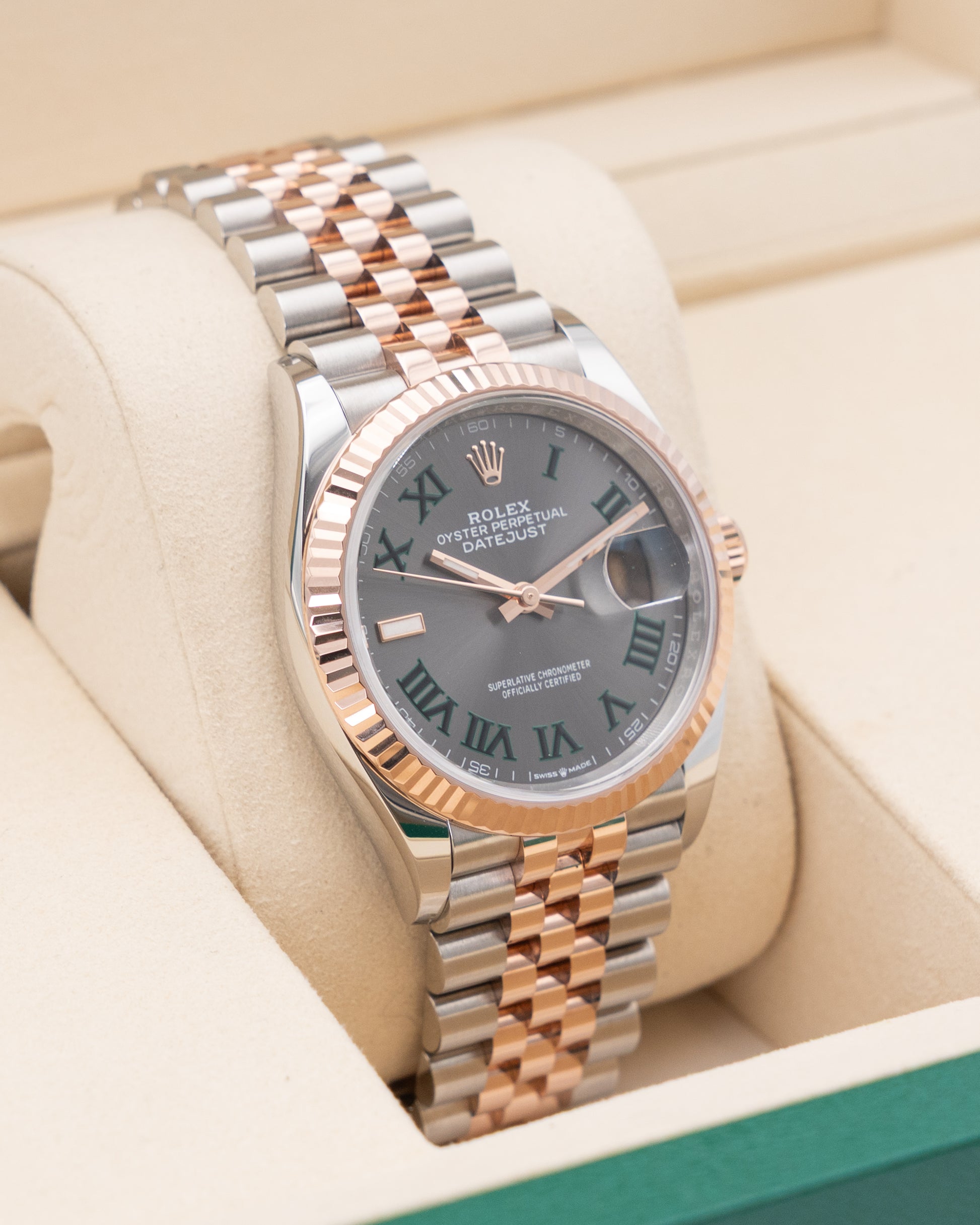 UNWORN Rolex Datejust 36mm 126231 Rose Gold Wimbledon Dial Two Tone Fluted Jubilee 2025