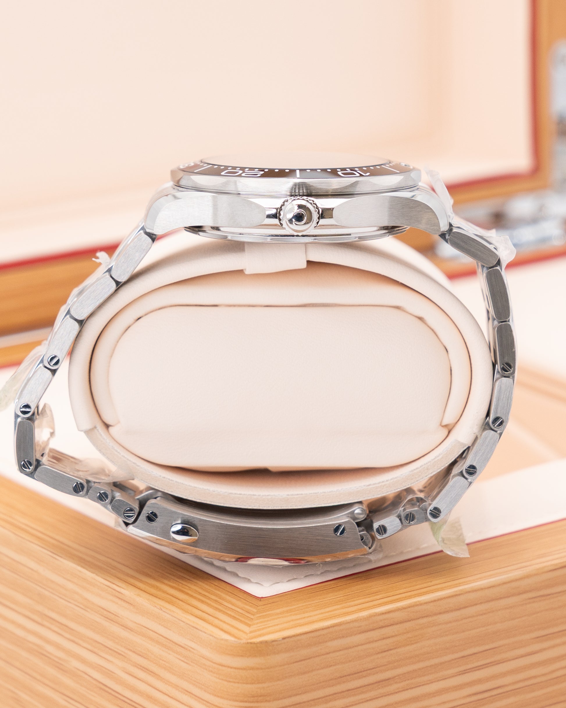 At its heart beats the Omega Co-Axial Master Chronometer Caliber 8800, a self-winding movement resistant to magnetic fields up to 15,000 gauss. Certified by METAS, it guarantees exceptional accuracy and reliability. The stainless steel bracelet completes the watch’s robust yet refined profile, while water resistance up to 300 meters makes it suitable for both professional diving and everyday wear. The Seamaster Diver 300M remains a symbol of Omega’s commitment to precision, craftsmanship, and enduring style.