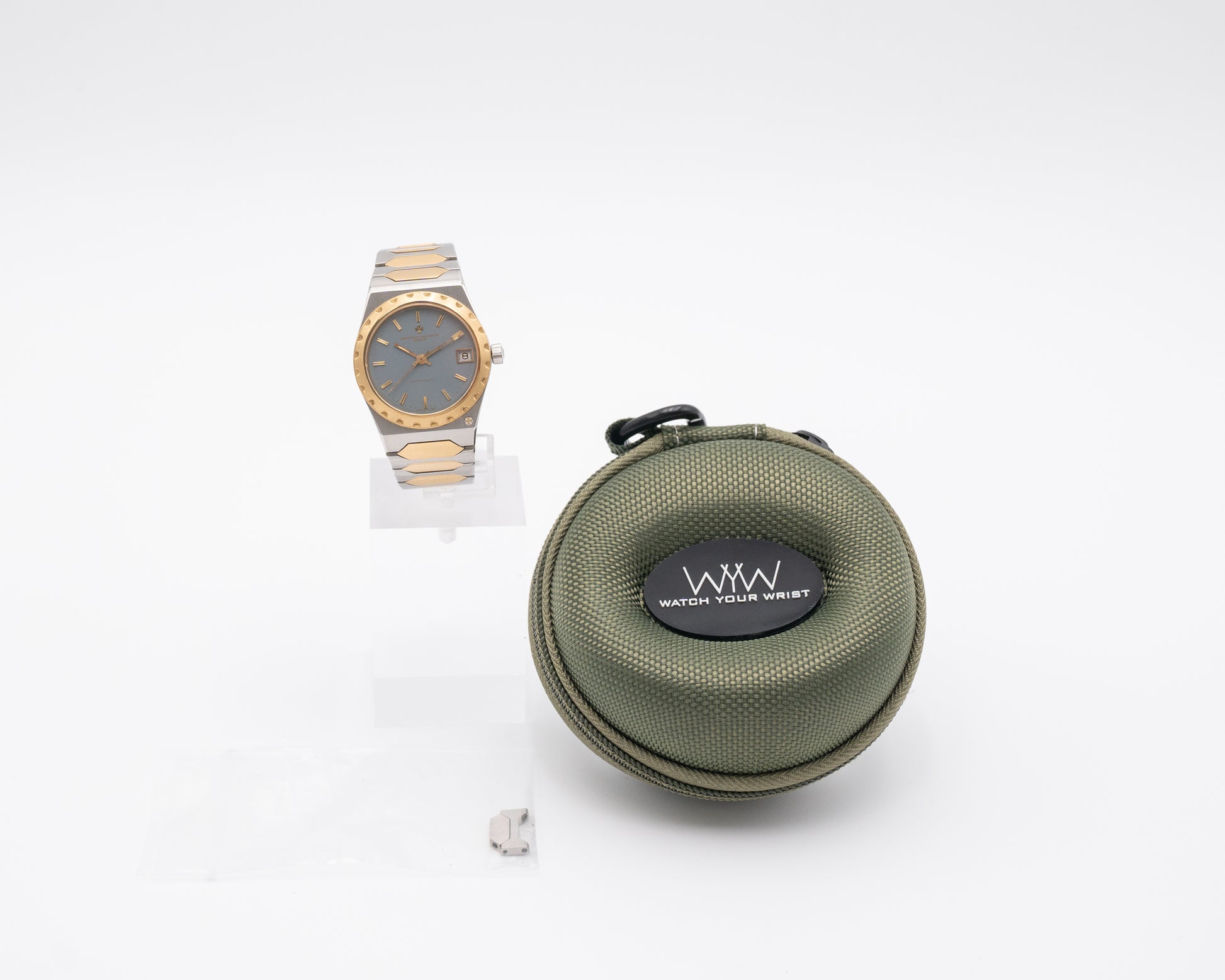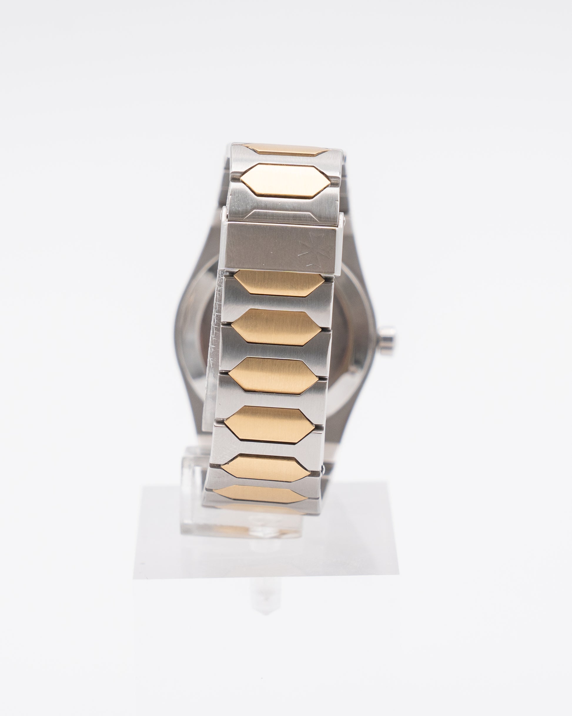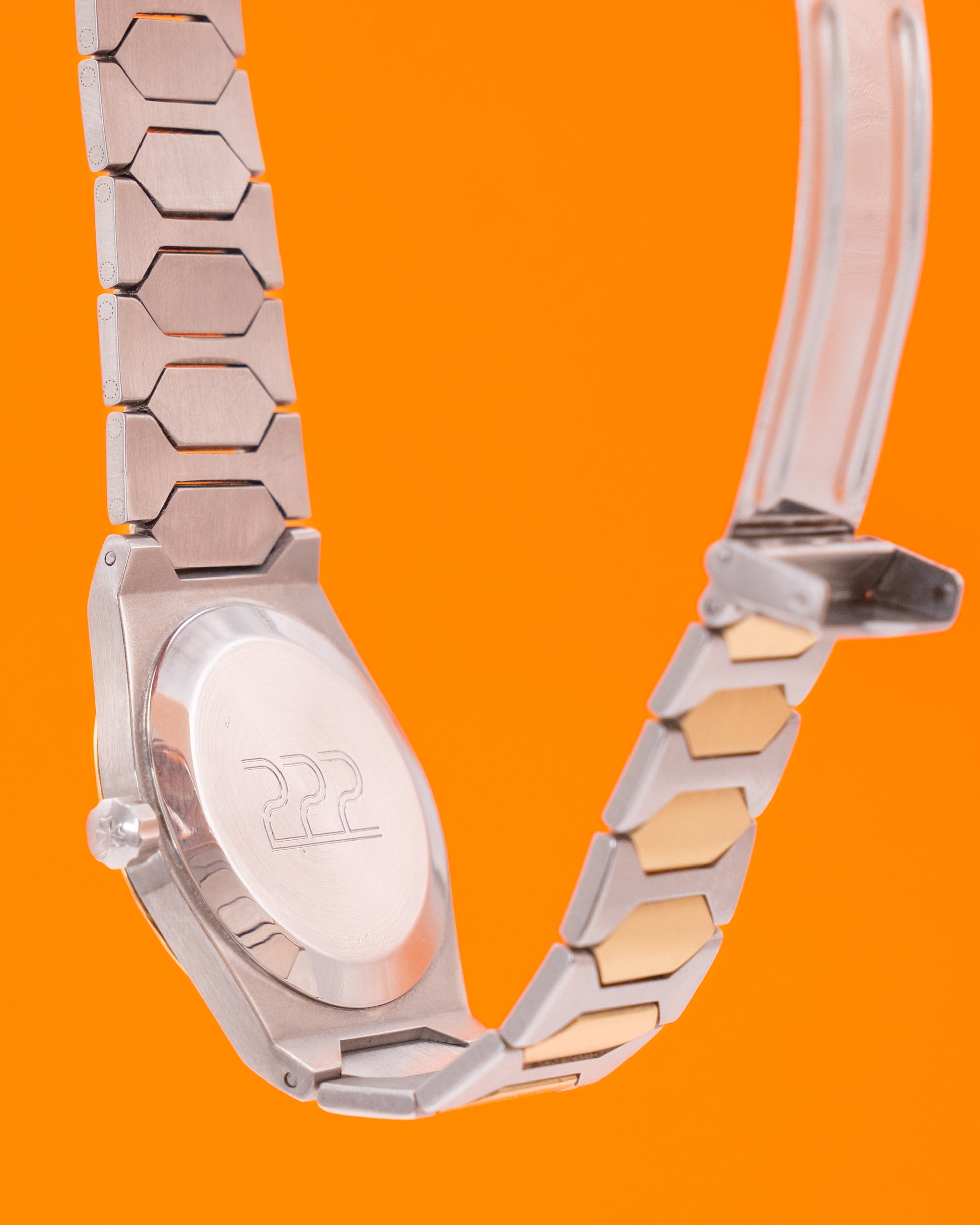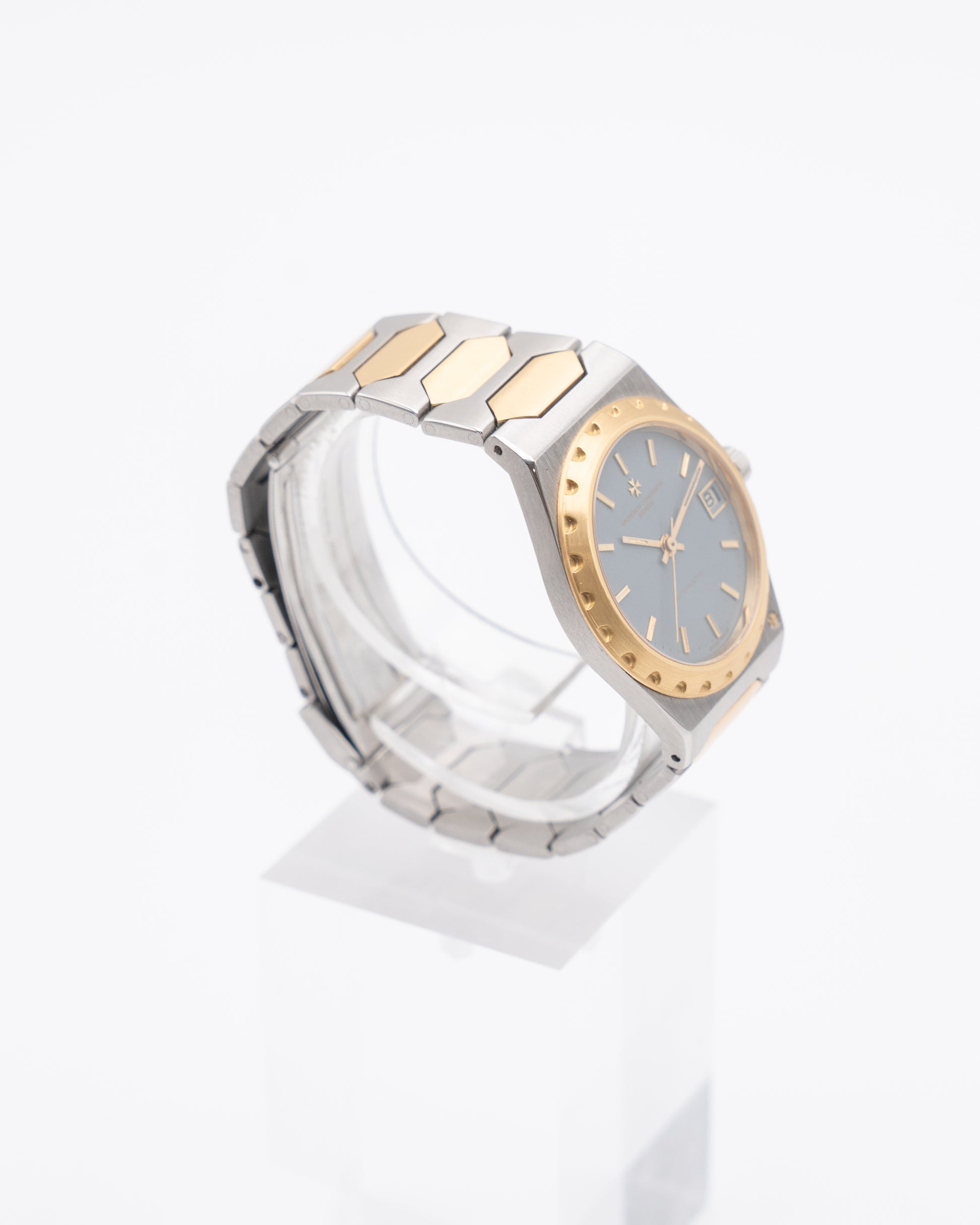 The Vacheron Constantin 222 44018 is a legendary timepiece that embodies the elegance and craftsmanship of Vacheron Constantin’s rich heritage. Originally introduced in 1977 to commemorate the brand’s 222nd anniversary, this model is an icon of luxury sports watches. Featuring a 35mm stainless steel case with yellow gold accents, the watch exudes a refined yet sporty aesthetic. The gray dial, complemented by gold-tone hour markers and hands, offers a timeless and sophisticated look, while the integrated steel and yellow gold bracelet enhances both comfort and style. The distinct notched bezel and sleek profile further solidify its place as a highly collectible timepiece.