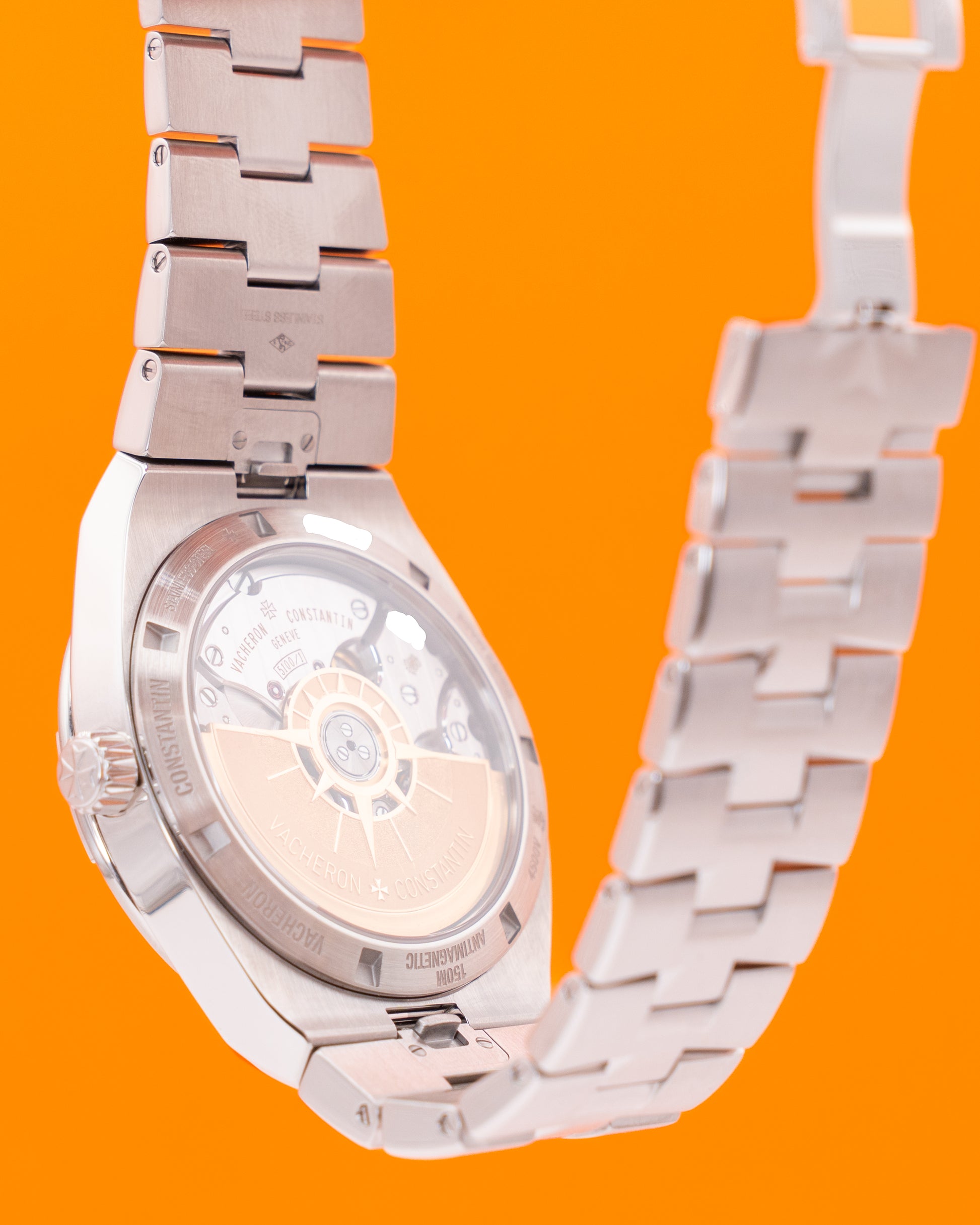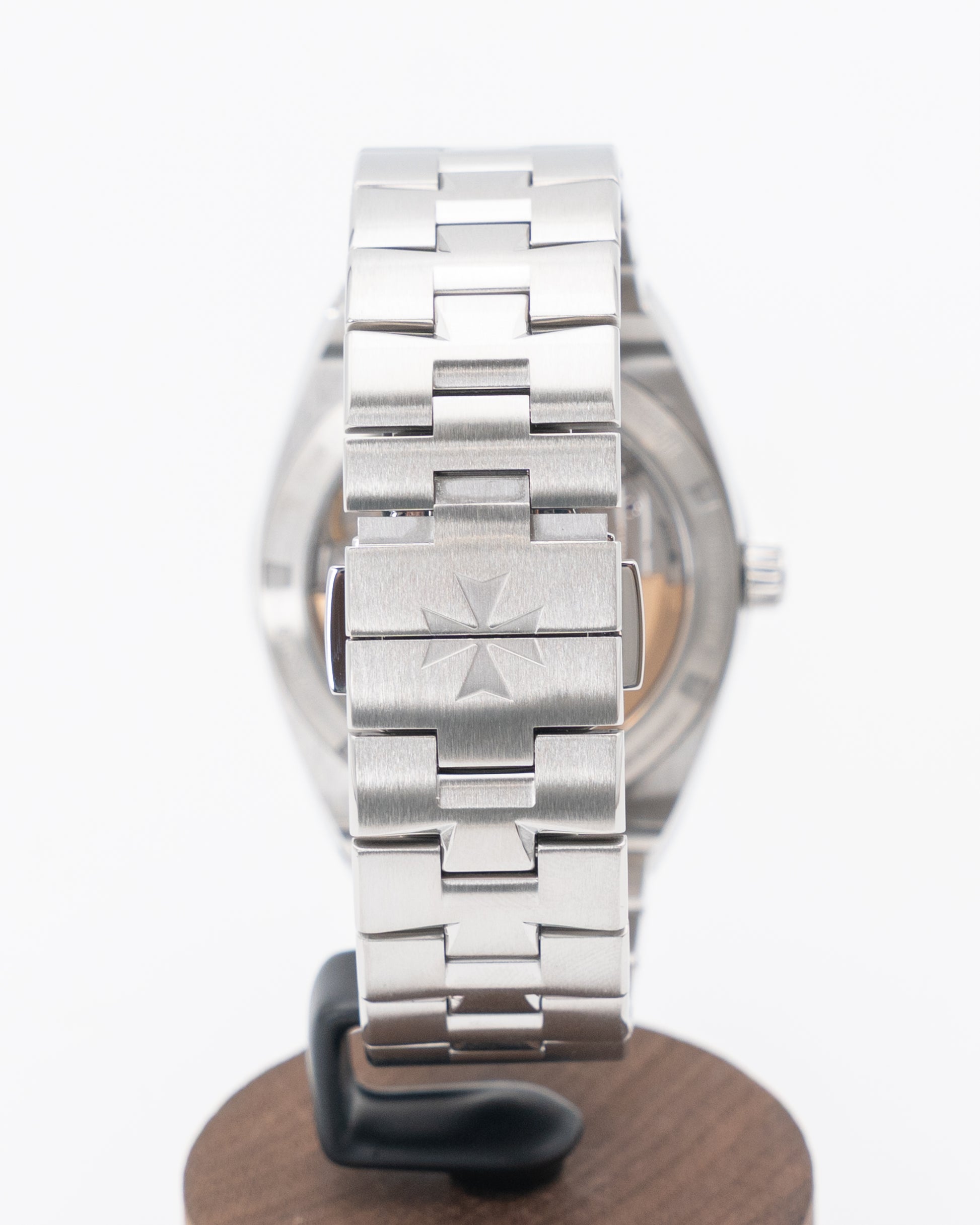 The Vacheron Constantin Overseas Ref. 4500V/110A-B128 is a striking interpretation of the brand’s celebrated sports-luxury timepiece, distinguished by its bold red dial and refined craftsmanship. The 41mm stainless steel case embodies strength and sophistication, showcasing the signature Maltese cross-inspired bezel that defines the Overseas line. Its vibrant red dial radiates confidence and energy, featuring luminous hour markers and hands for impeccable legibility, along with a neatly framed date window at 3 o’clock. The design seamlessly merges contemporary aesthetics with the timeless elegance for which Vacheron Constantin is known.