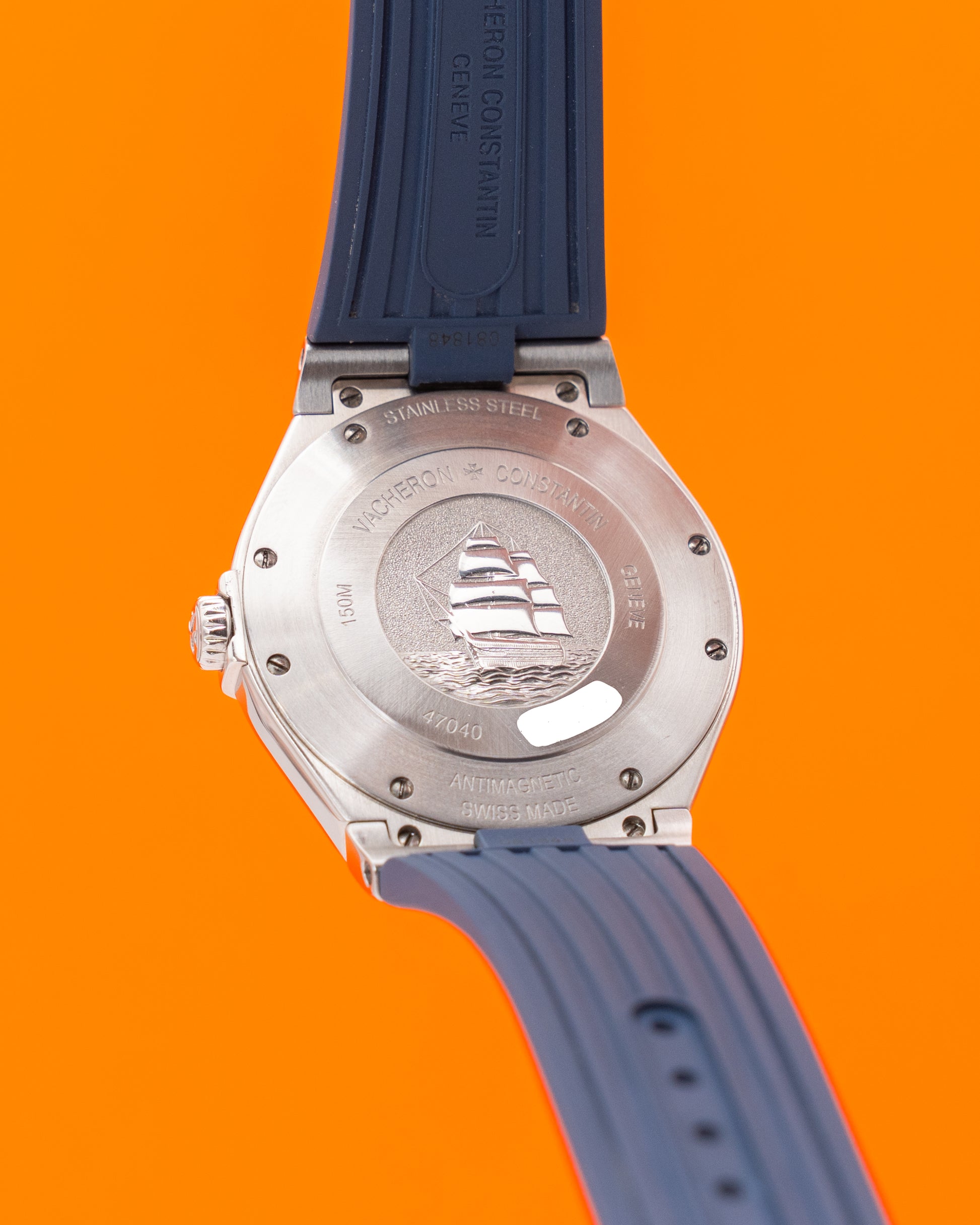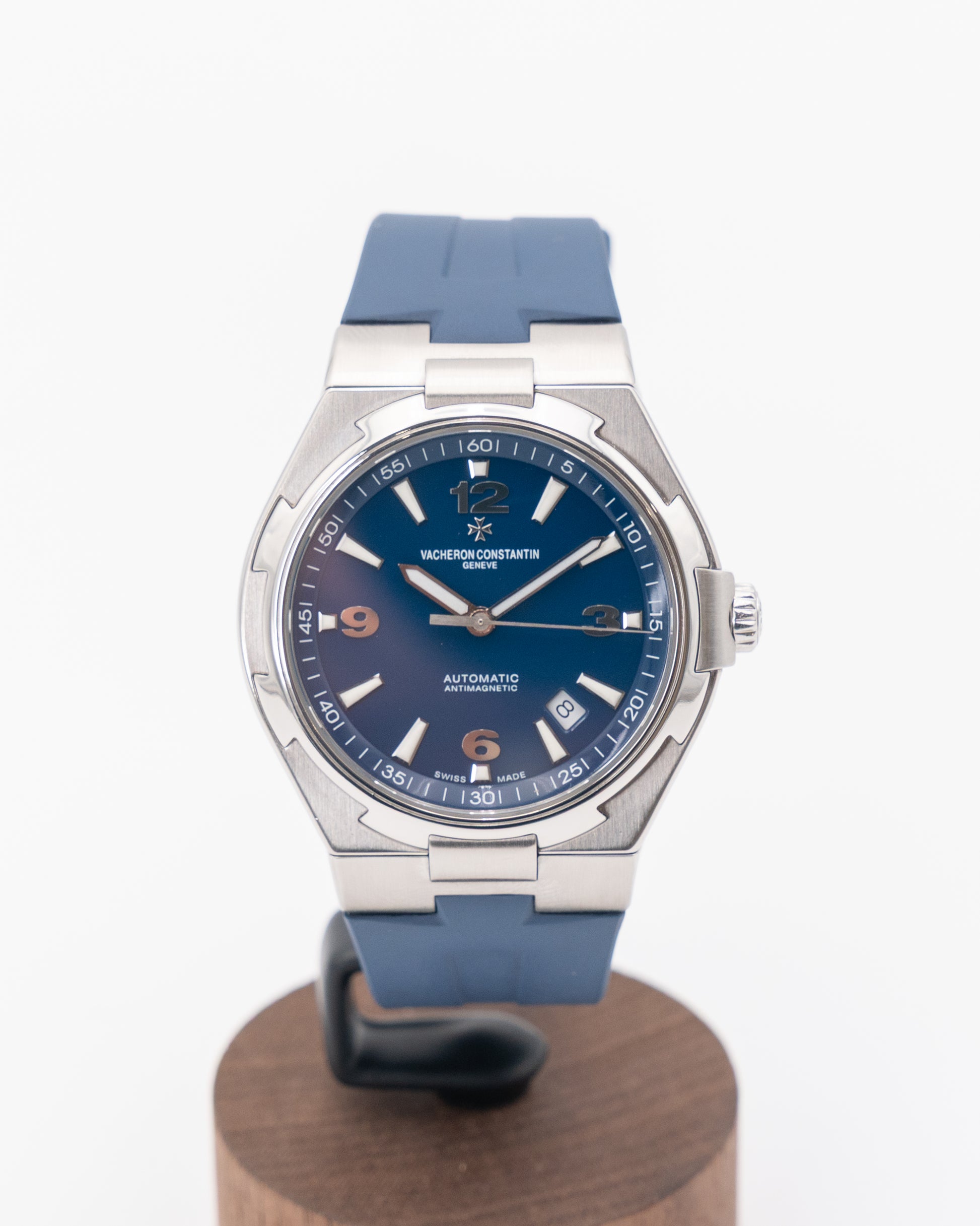 The Vacheron Constantin Overseas 47040/000A-9008 is a rare and highly collectible timepiece, produced as a limited edition of just 350 pieces. Its 42 mm stainless steel case is complemented by a striking blue dial, offering a bold yet refined aesthetic that is instantly recognizable within the Overseas collection. Designed for both durability and comfort, it comes mounted on a rubber strap, giving the watch a sporty and contemporary edge while retaining the elegance expected from Vacheron Constantin.