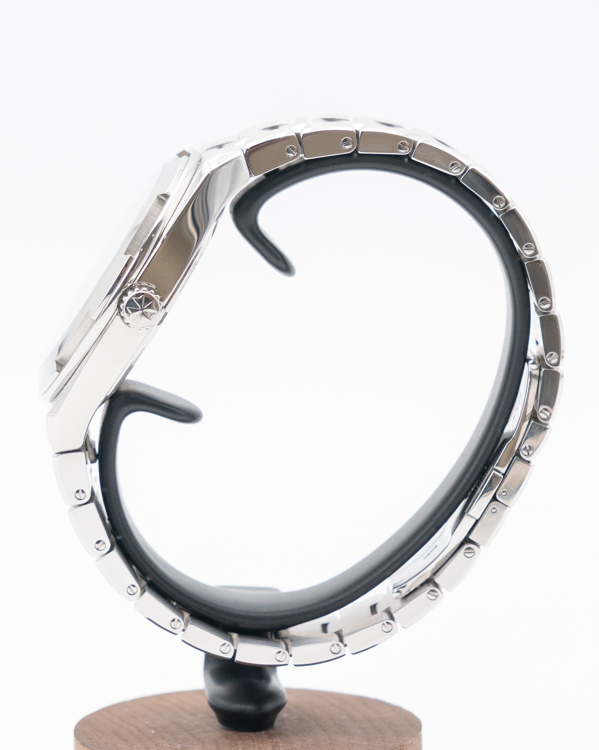 Powering this piece is the Caliber 2460 R31L/2, an automatic movement developed and finished in-house, visible through the sapphire caseback. The mechanism provides both elegance and precision, with a 40-hour power reserve and hallmark finishing that bears the Geneva Seal. The model comes with an interchangeable bracelet and straps—stainless steel, leather, and rubber—allowing the wearer to easily transition between formal and casual settings. With 50 meters of water resistance, it stands as a testament to Vacheron Constantin’s ability to blend technical ingenuity with timeless aesthetics.